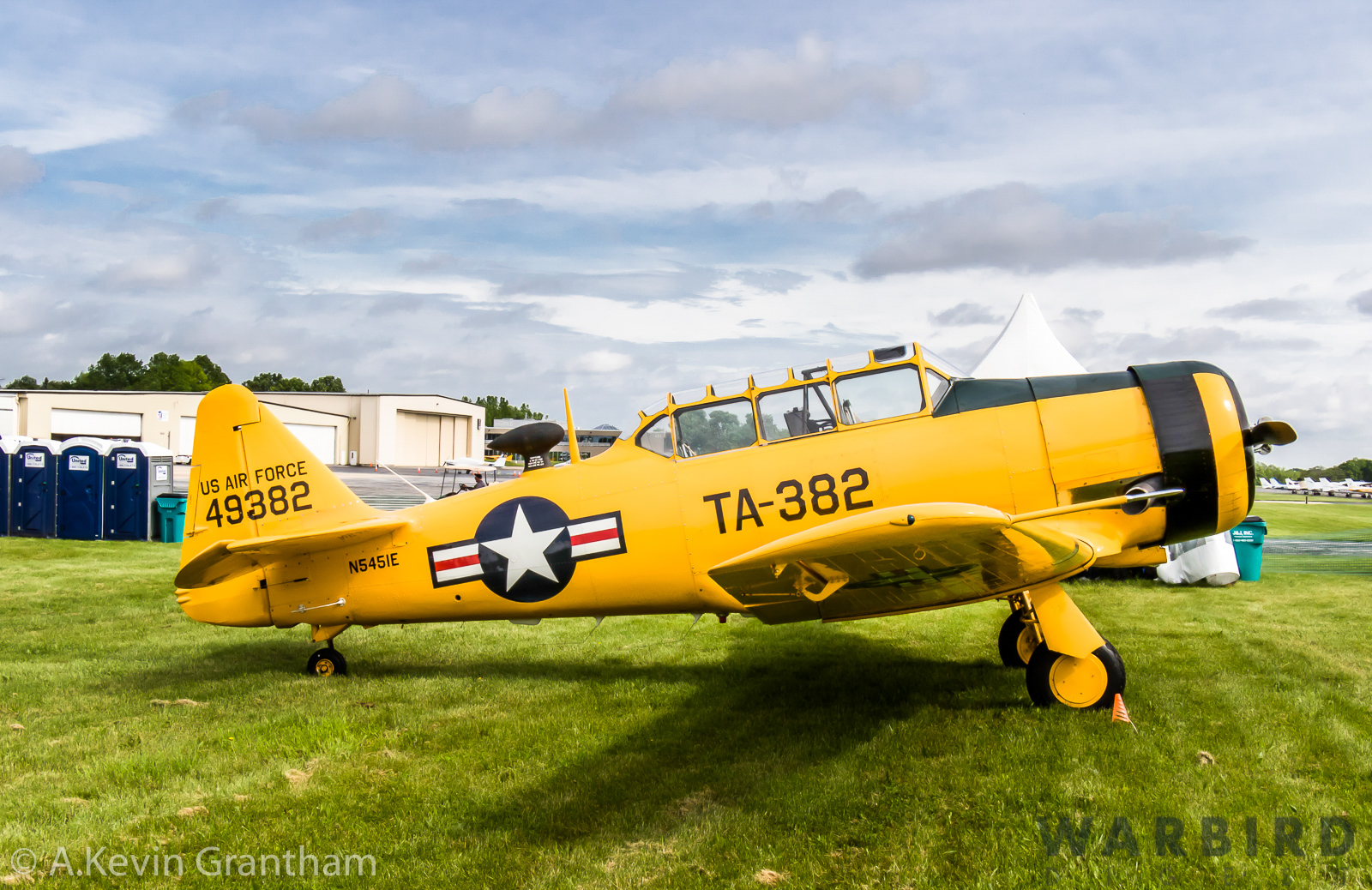 David Steele and Glen Allen’s marvelous North American T-6G Texan, serial 49-3382 on the grass at Frederick. (photo by A.Kevin Grantham)
