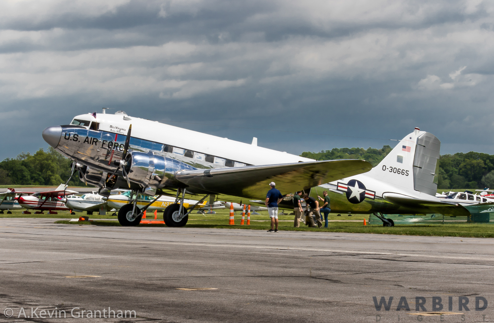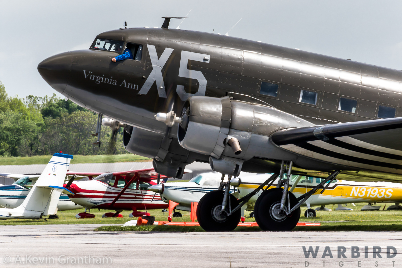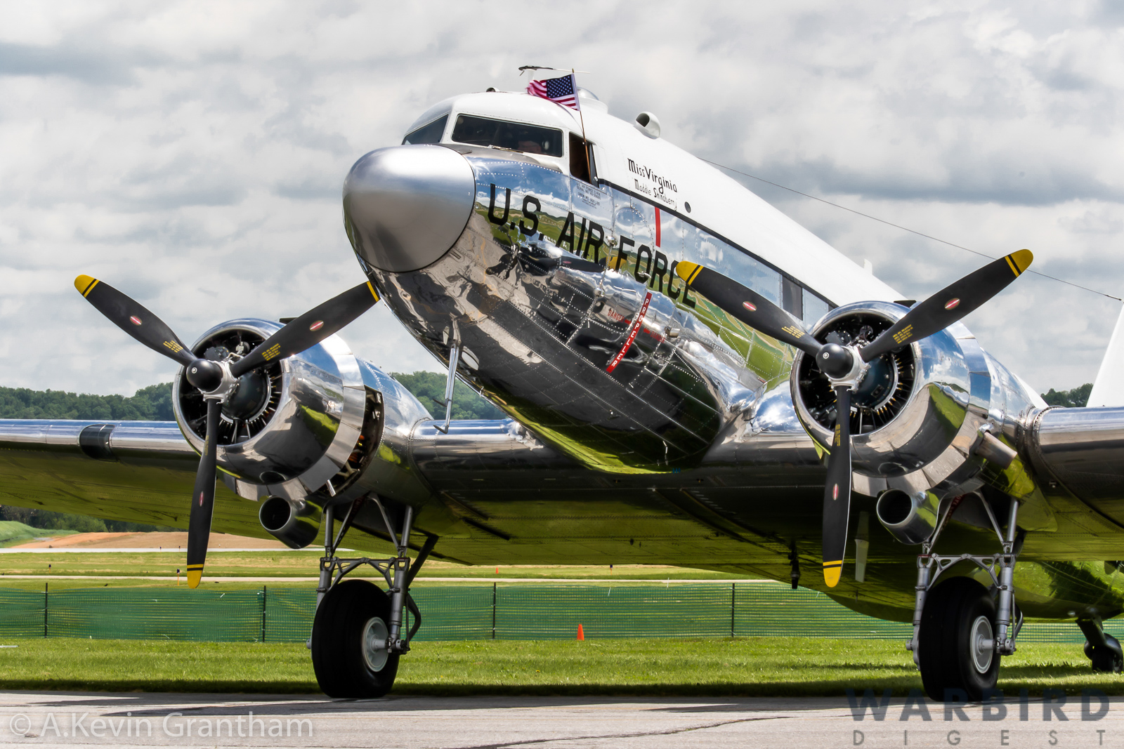 Miss Virginia all buttoned up awaiting the trial start of her recalcitrant starboard engine about a quarter hour after the other C-47s had left for their flight over DC. (photo by A.Kevin Grantham)