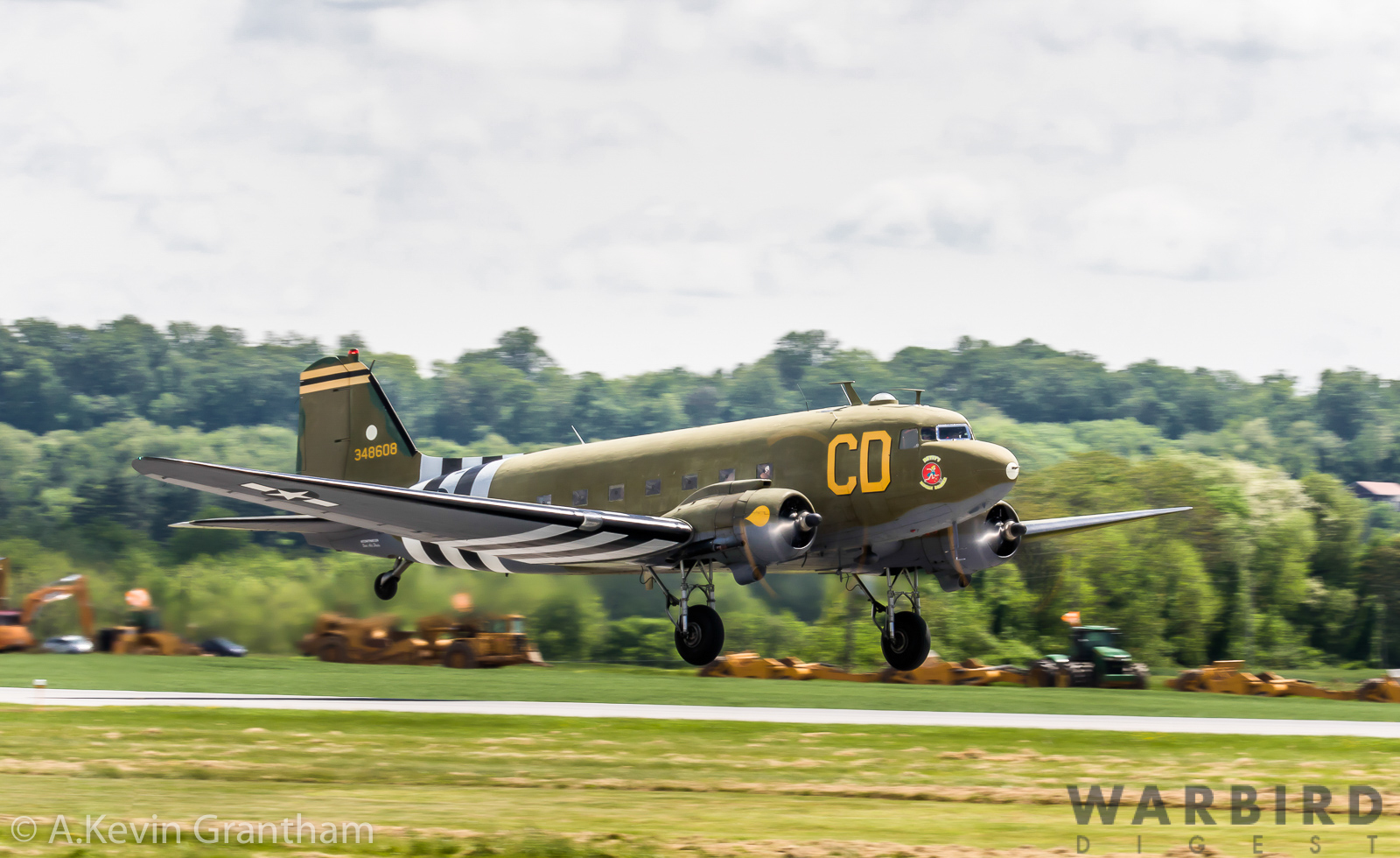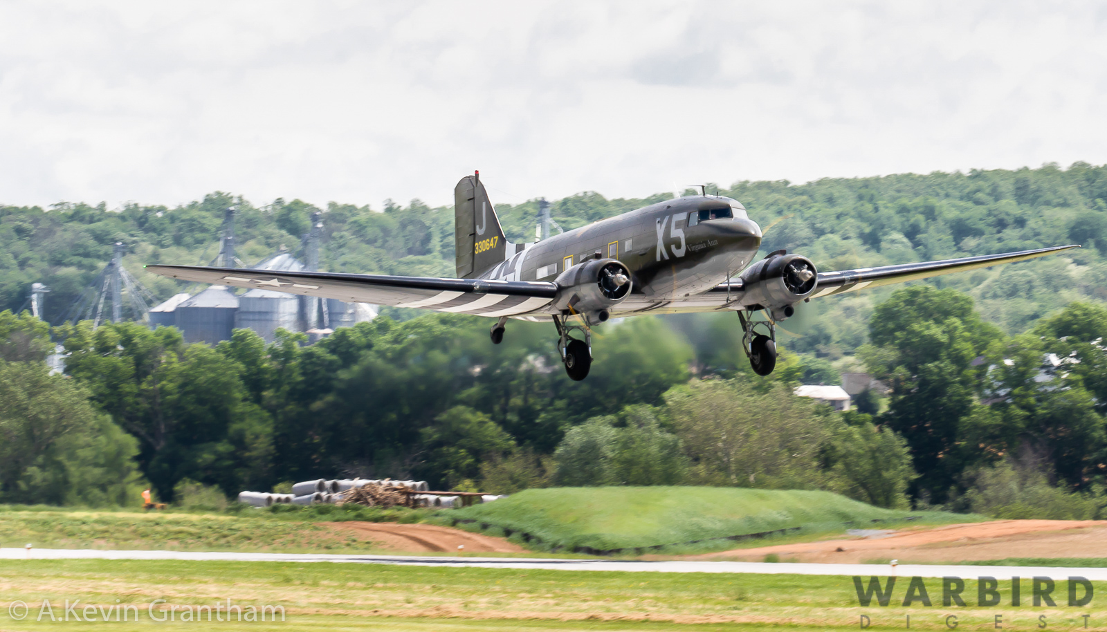 BBB heading skywards to meet up with Placid Lassie and three other C-47s for the overflight of Washington, DC. The weather was so questionable it almost cancelled the event, but the timing between storms worked out, thankfully. (photo by A.Kevin Grantham)