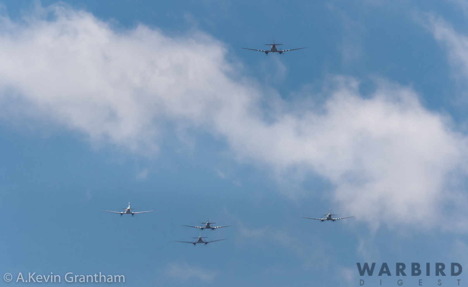The five C-47s tightening up their formation as they head out to DC. (photo by A.Kevin Grantham)