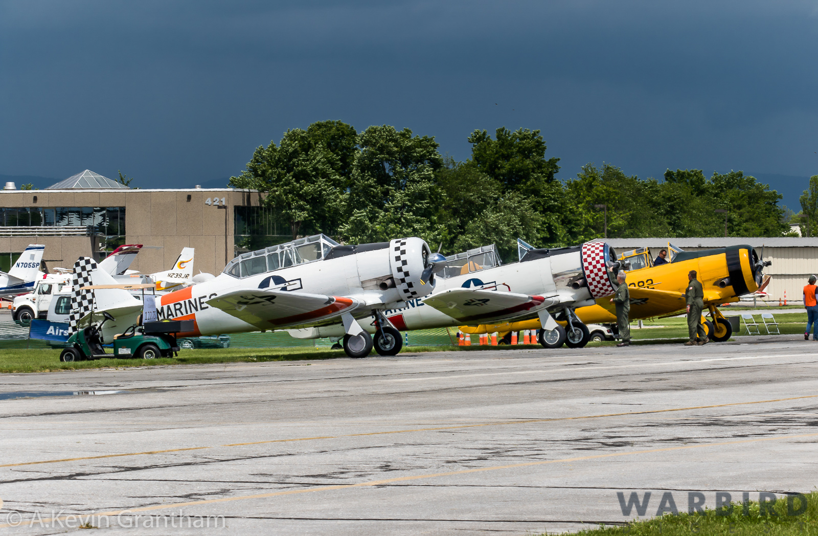 Three of the T-6/Harvards on show at the Frederick Fly-in last Friday. (photo by A.Kevin Grantham)