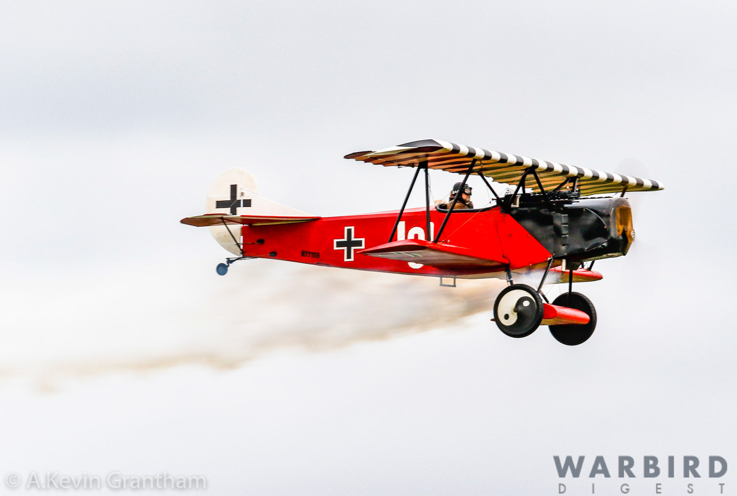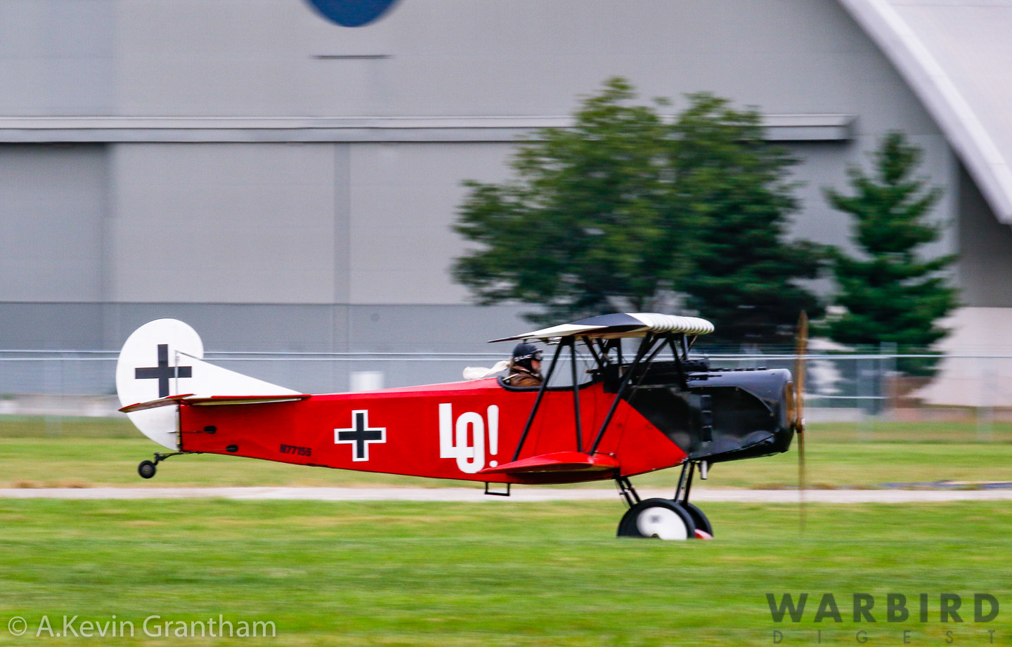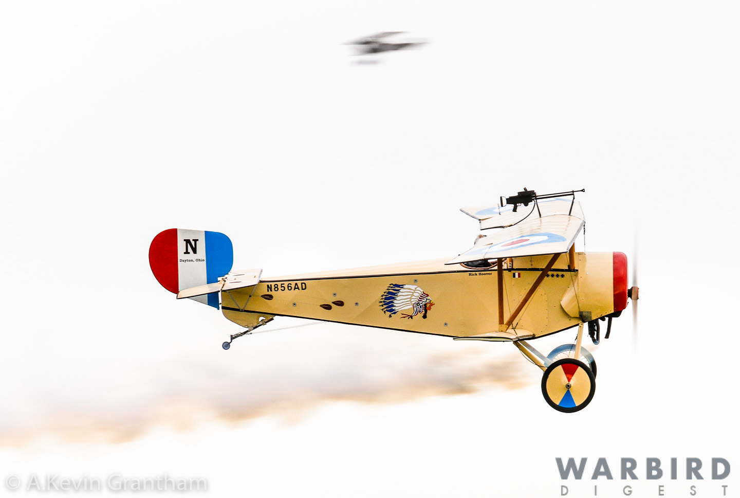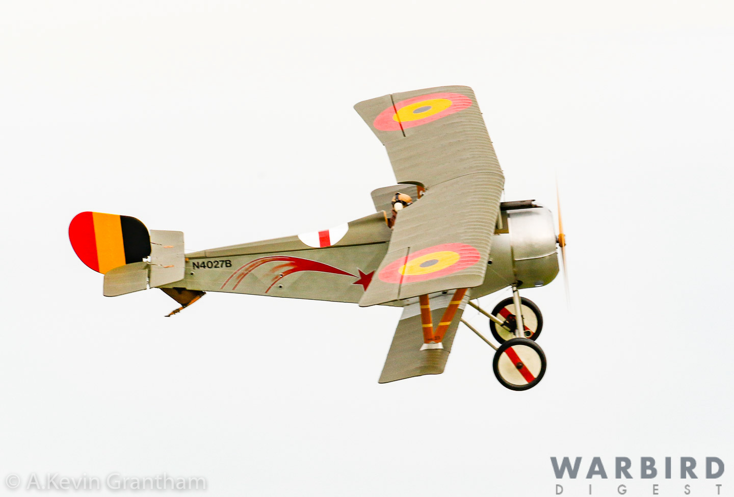 There were also a few full-scale replicas on static display, including a SPAD XIII from Andy Parks’ Vintage Aero Flying Museum at Platte Valley Airport, in Fort Lupton, Colorado. “It has taken us over five years to build this from scratch,” said VAFM volunteer Norm Nickoly. “It is built exactly the way it would have been built in 1918 except for a modern Lycoming engine. It also has heavier wheels with brakes and a tail wheel instead of a skid because we have to land on a [concrete] runway.”