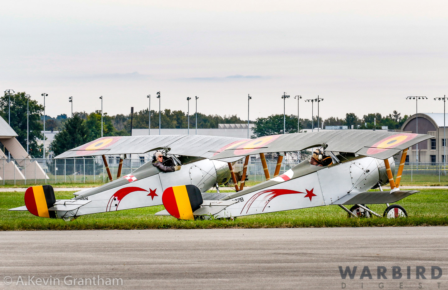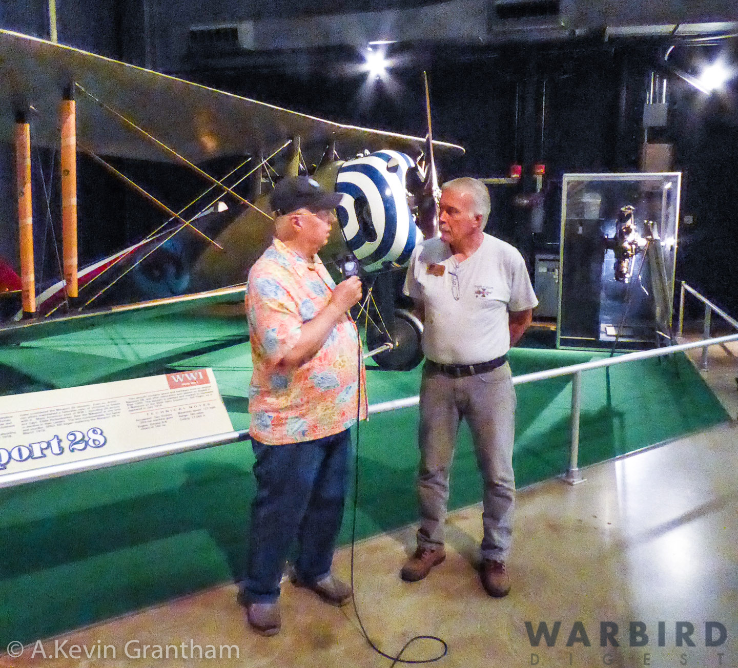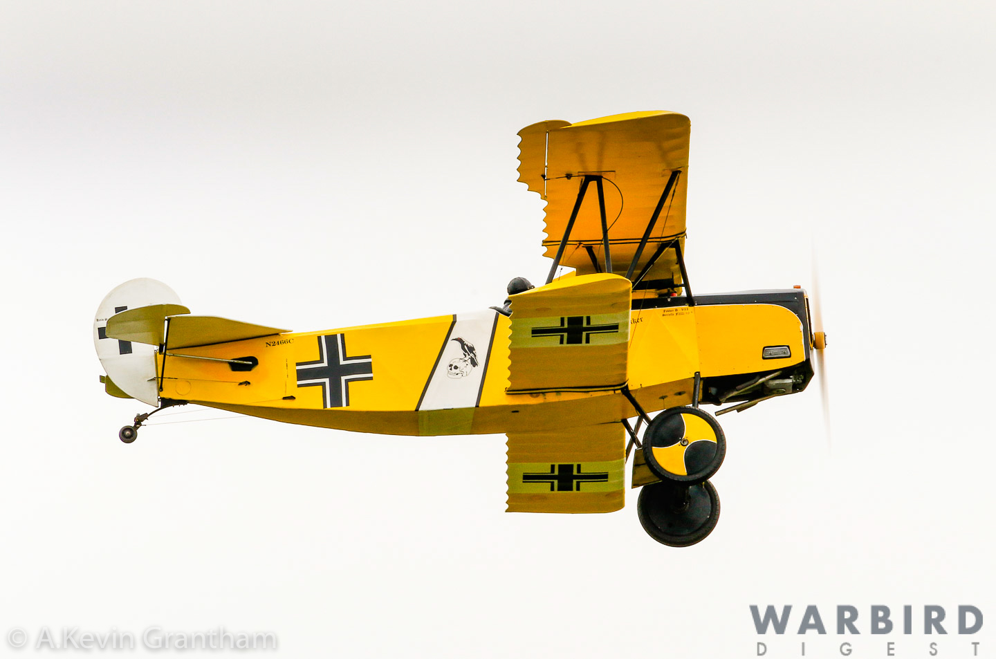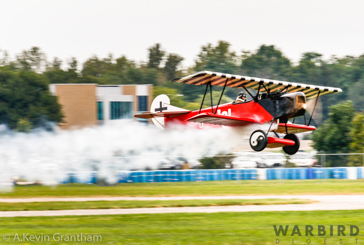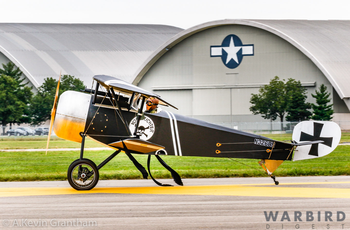 There were also a few full-scale replicas on static display, including a SPAD XIII from Andy Parks’ Vintage Aero Flying Museum at Platte Valley Airport, in Fort Lupton, Colorado. “It has taken us over five years to build this from scratch,” said VAFM volunteer Norm Nickoly. “It is built exactly the way it would have been built in 1918 except for a modern Lycoming engine. It also has heavier wheels with brakes and a tail wheel instead of a skid because we have to land on a [concrete] runway.”