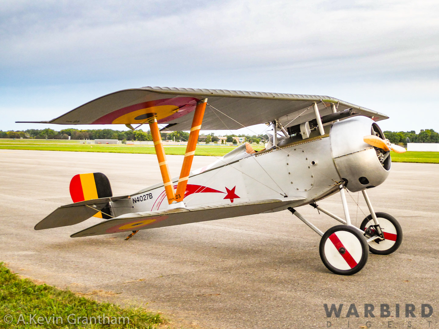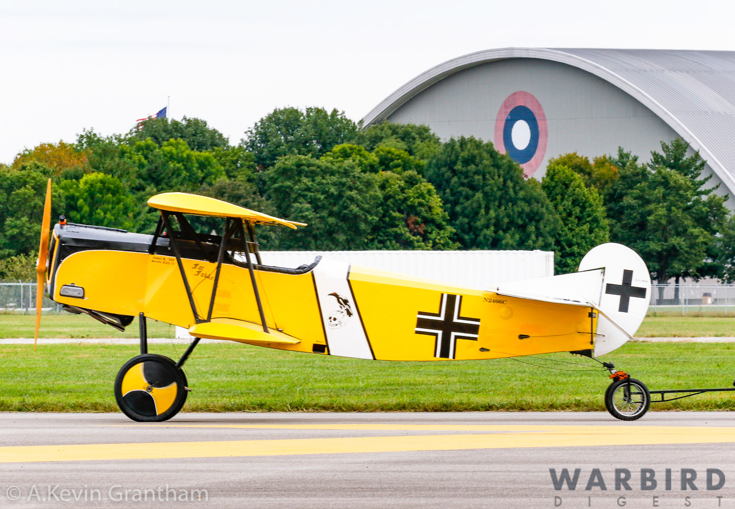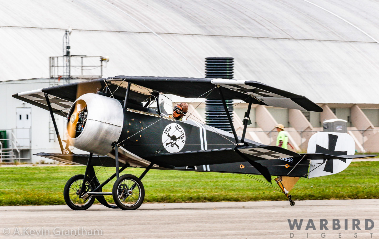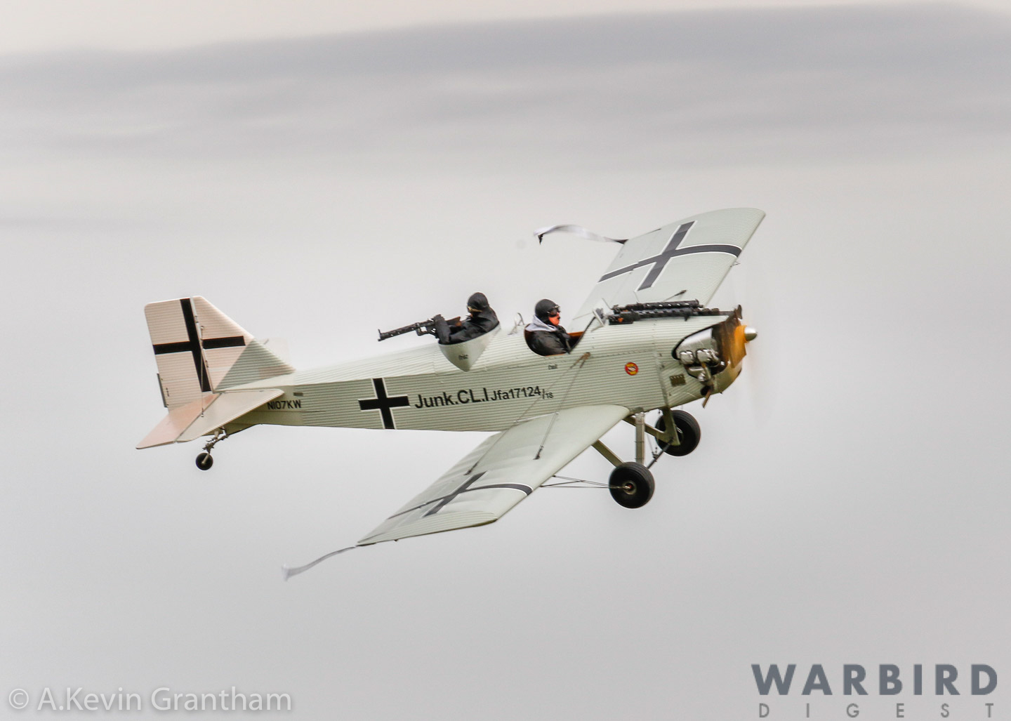 There were also a few full-scale replicas on static display, including a SPAD XIII from Andy Parks’ Vintage Aero Flying Museum at Platte Valley Airport, in Fort Lupton, Colorado. “It has taken us over five years to build this from scratch,” said VAFM volunteer Norm Nickoly. “It is built exactly the way it would have been built in 1918 except for a modern Lycoming engine. It also has heavier wheels with brakes and a tail wheel instead of a skid because we have to land on a [concrete] runway.”