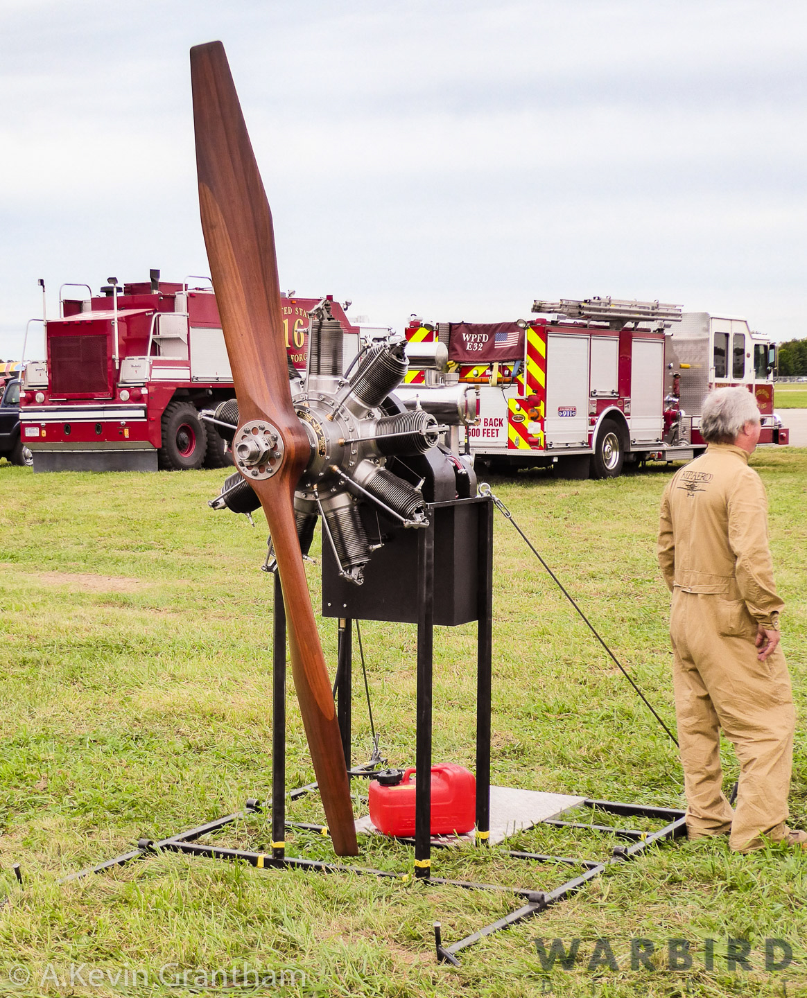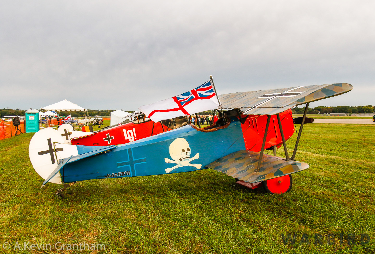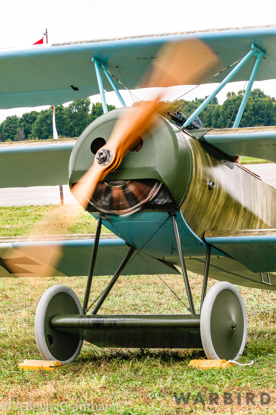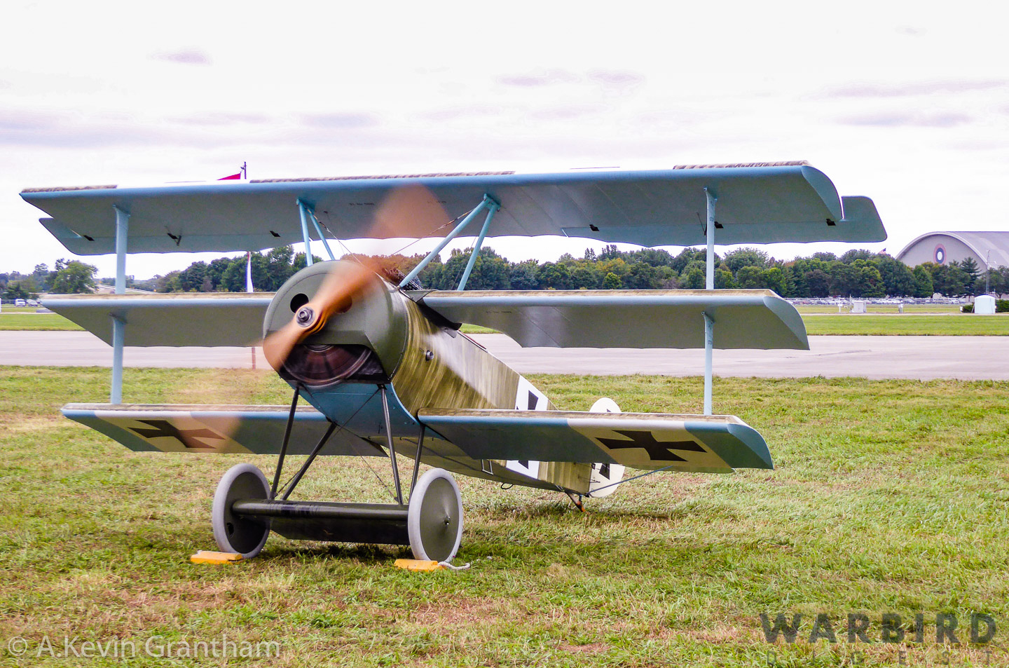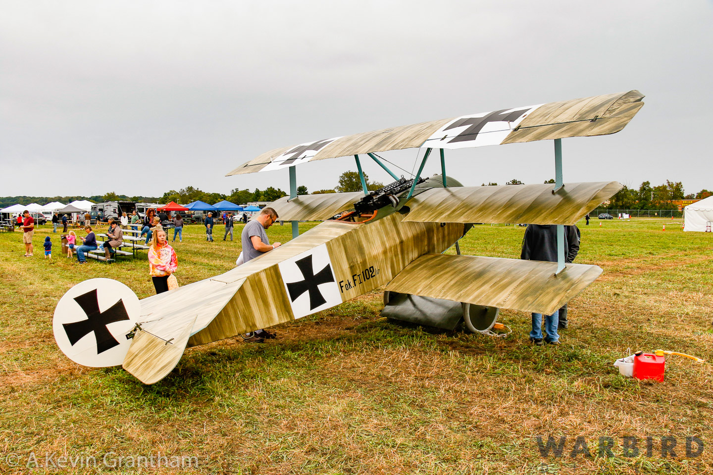 Fred Murrin also brought his full-size replica Fokker Dr.I triplane to Dayton. Mr. Murrin is one of the driving forces behind all of the Dawn Patrol Rendezvous gatherings dating back to 1996. Murrin built his triplane from plans he acquired during the 1970s. Since that time, he has modified this replica design to represent the original artifact more authentically, including the addition of an original, WWI-era Le Rhône rotary engine which Mr. Murrin graciously ran for the public during the show.
