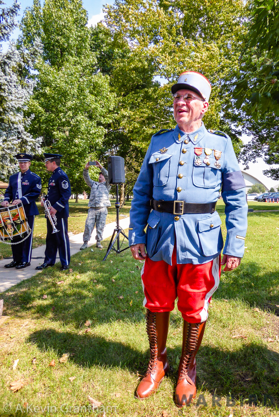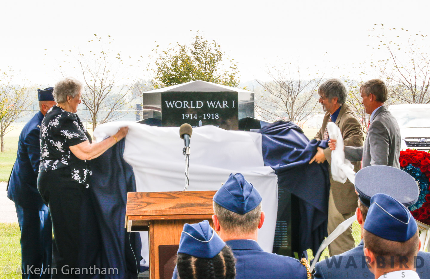 Robert Kasprzak moderated the ceremony that opened with a very loud and moving flyover by an B-1 bomber in full afterburner. Ms. Mary Muller, daughter of WWI pilot Lt. Stephen Thomas; Col. Carl Fishbach, Commander 7th Operations Group, Dyess AFB, Texas; and Lt. Gen. (Ret.) John Hudson, Director, NMUSAF gave speeches that helped mark this event. Perhaps, the words of Michael O’Neal, President, LWWIAH best captured the background and true motivation for installing this tribute to the American aviators of World War I: