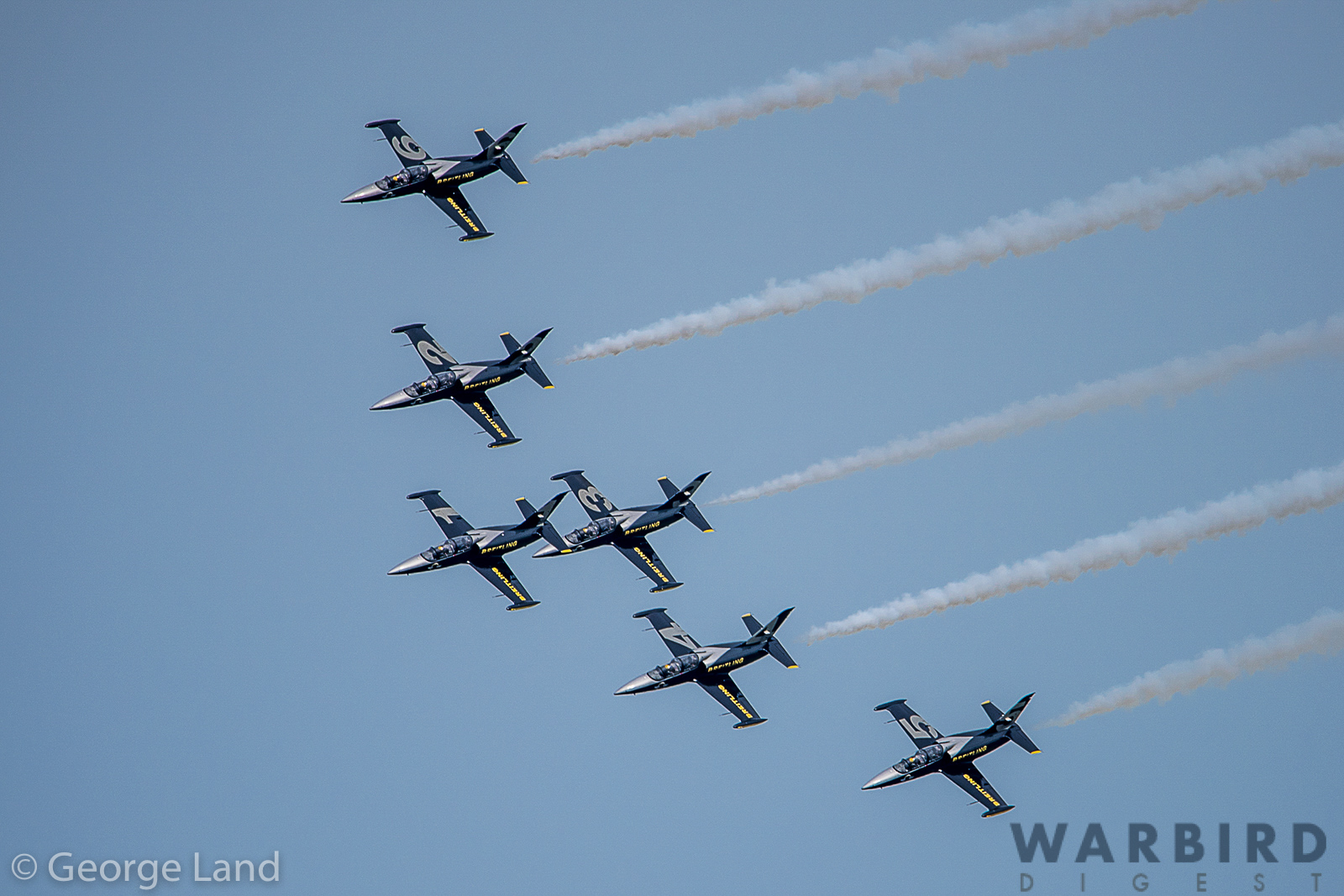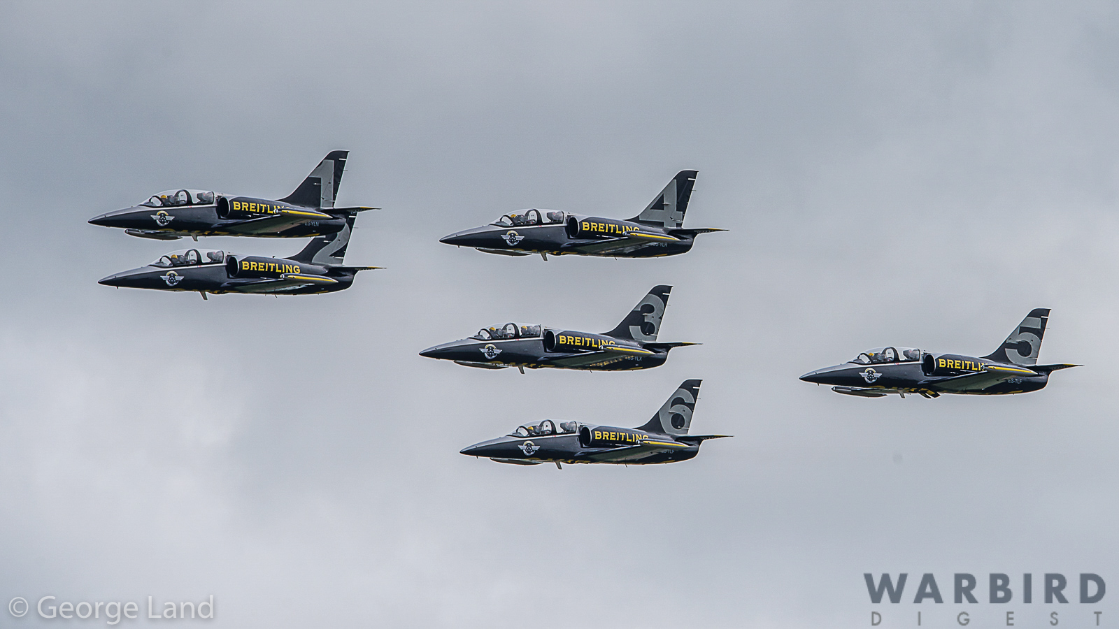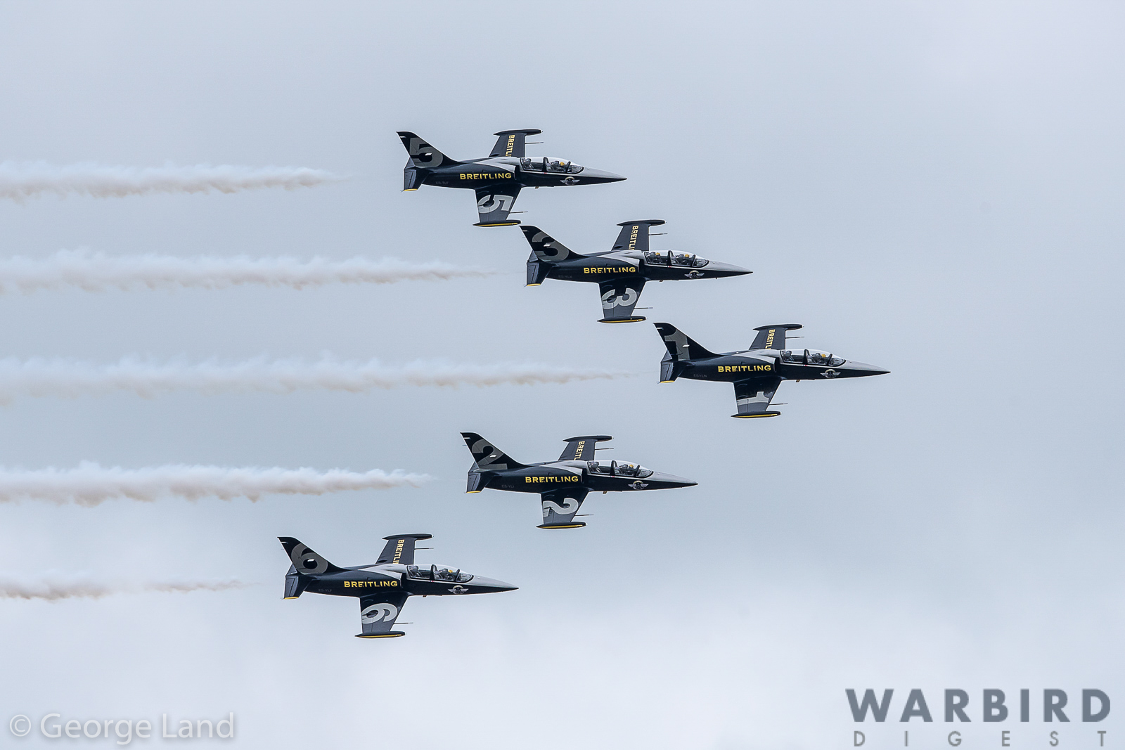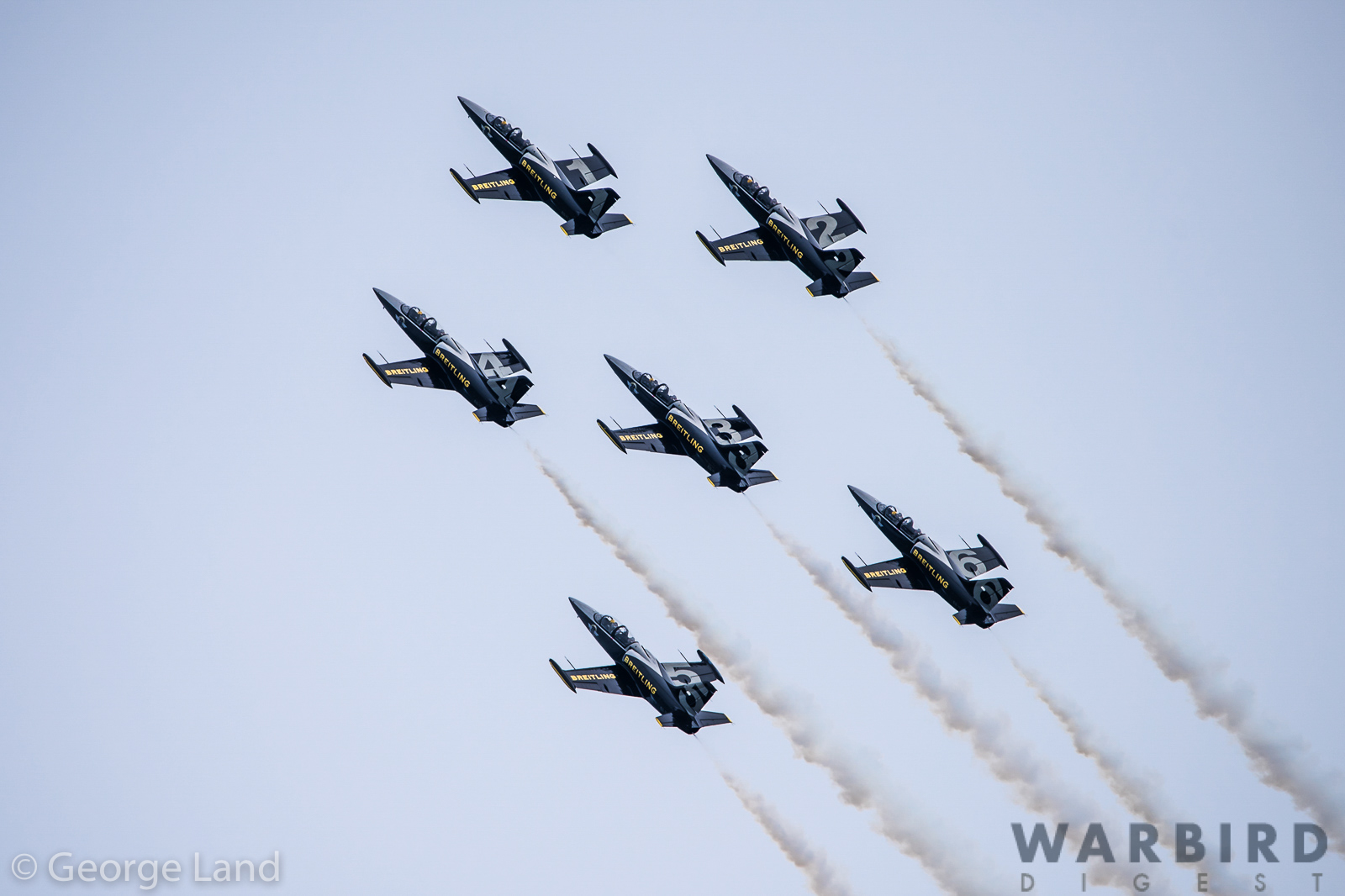 With the show now starting to draw to an end, the civilian operated and Swiss-based Breitling Jet Team, comprised of seven Aero Vodochody L-39C Albatros, took to the skies and gave a skilled and polished performance full of high speed and precision close-formation aerobatics.