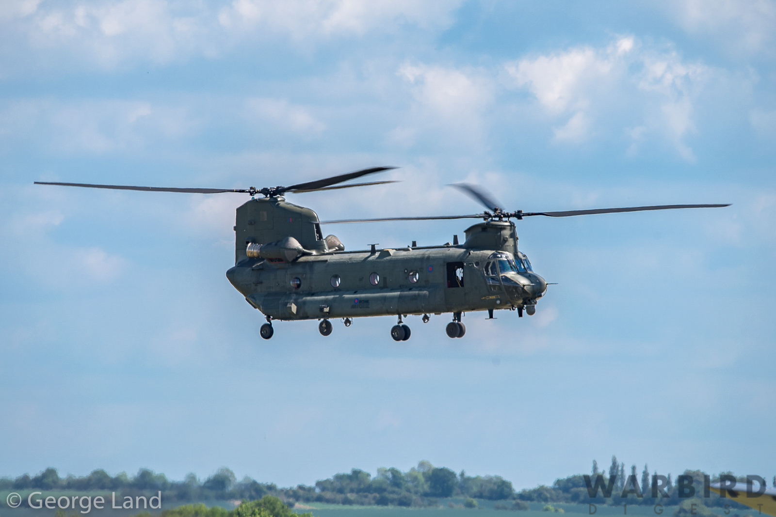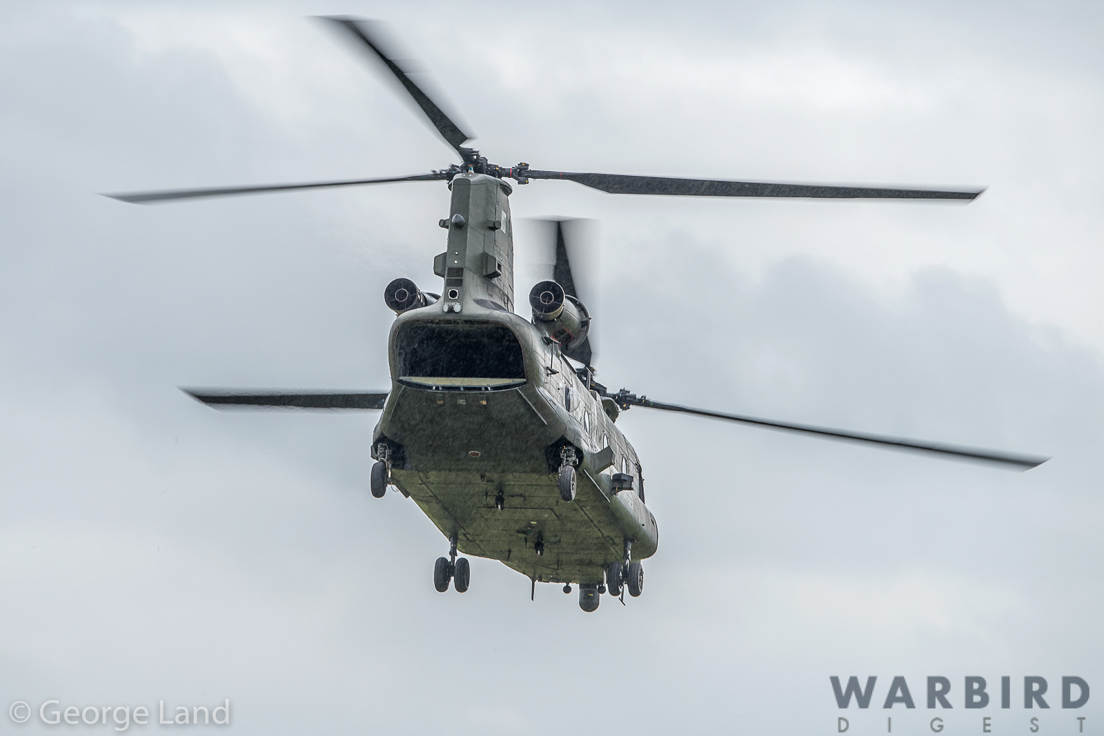 Augusta Westland WAH-64 Apache AH1 ZJ231, No3 Regiment, Army Air Corp, Wattisham + Boeing Vertol Chinook HC6A, ZA708-AP, MOD-Boeing Vertol-QinetiQ, Boscombe Down (Conversion). (photo by George Land)