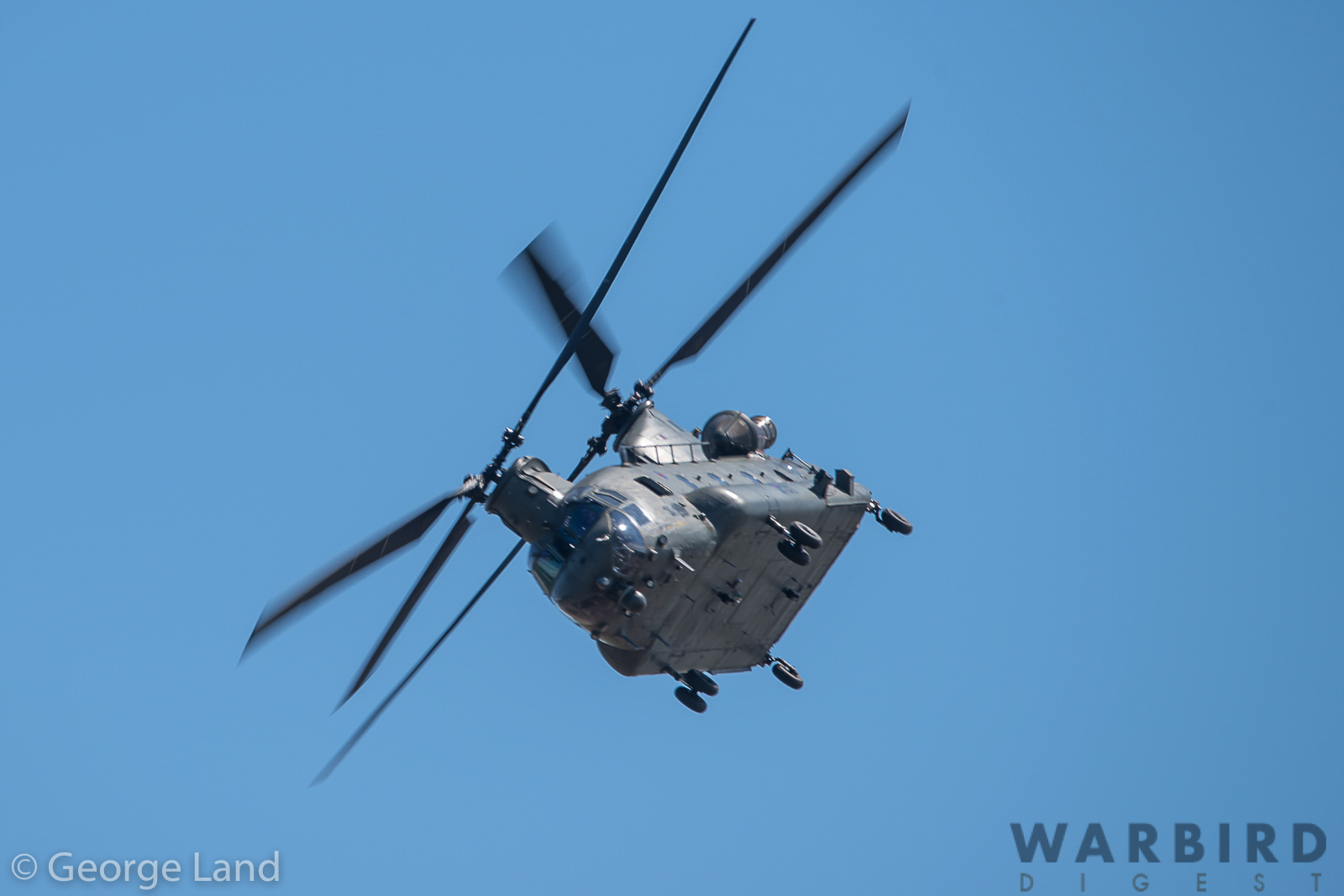 The action then switched to Britain’s Army Air Corp, with the appearance over the horizon of a WAH-64 Apache attack helicopter from the British Army’s No.3 Regiment at Wattisham Airfield (the former long-time home of both RAF and USAAF combat aircraft). Of course during this performance, there was a healthy dose of pyrotechnics to simulate for the public the ground support roll this impressive aircraft plays in wartime. Interestingly, the British Army rotary wing aircraft units only field light transport and attack helicopters, whereas the RAF handles the heavy lift requirements with their Chinooks, Pumas and Merlins.