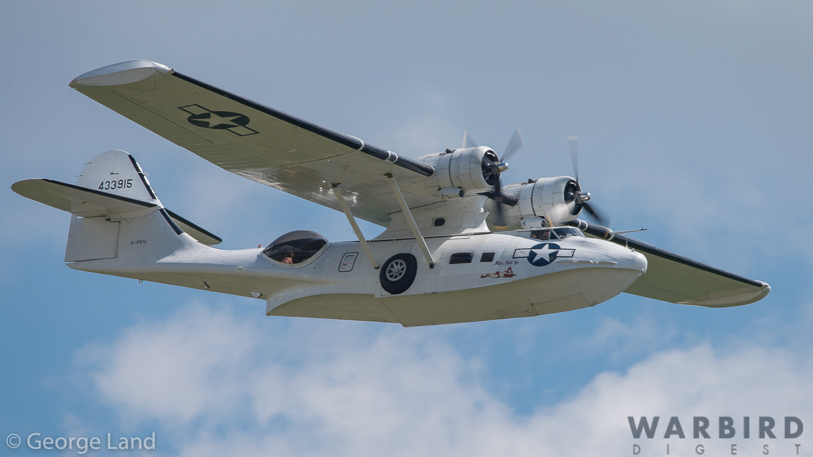 Catalina in flight – Canadian Vickers PBY-5A Catalina (Canso) OA-10-VI, 44-33915, G-PBYA, Miss Pick Me UP, sn CV283. (photo by George Land)