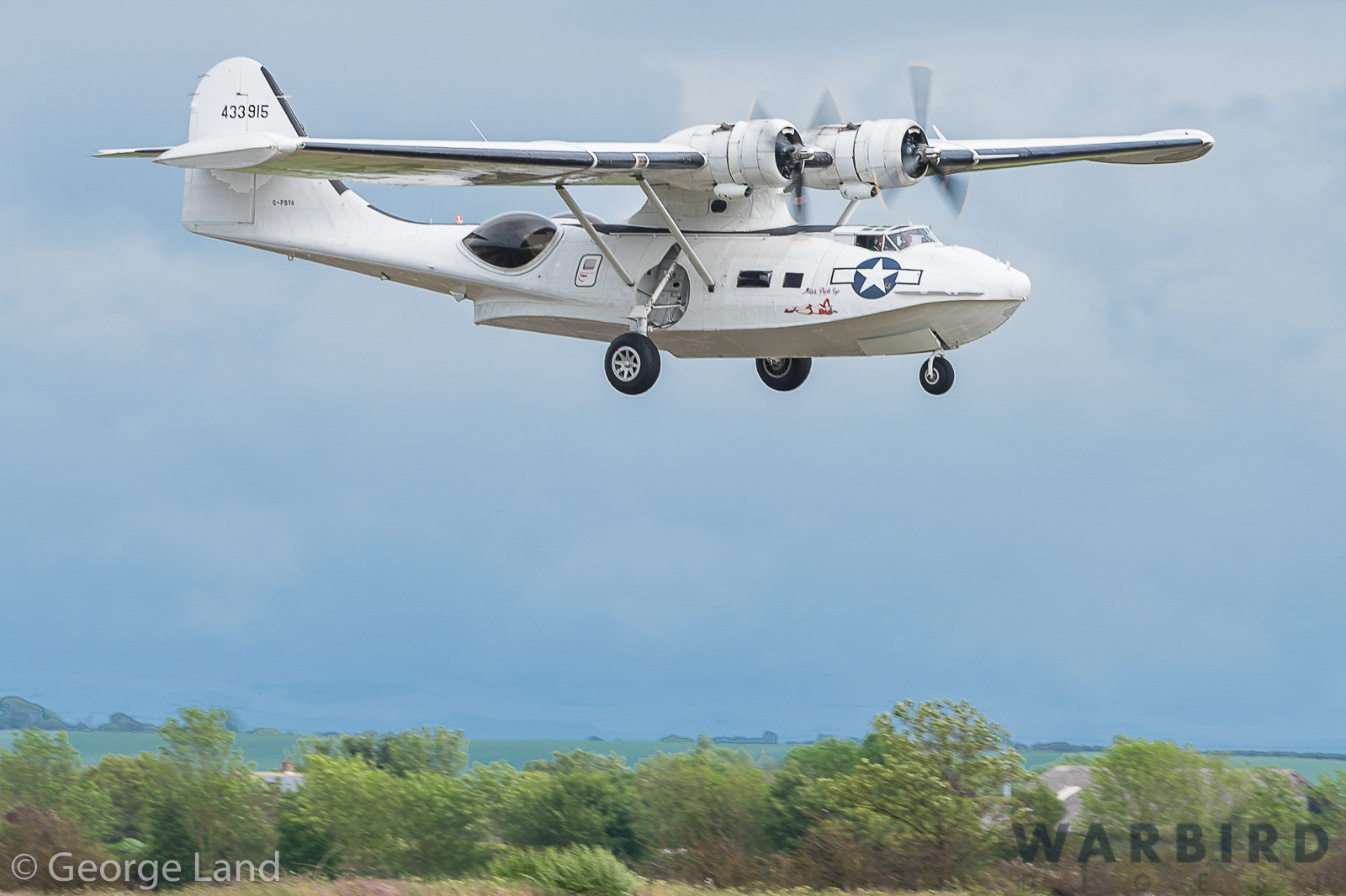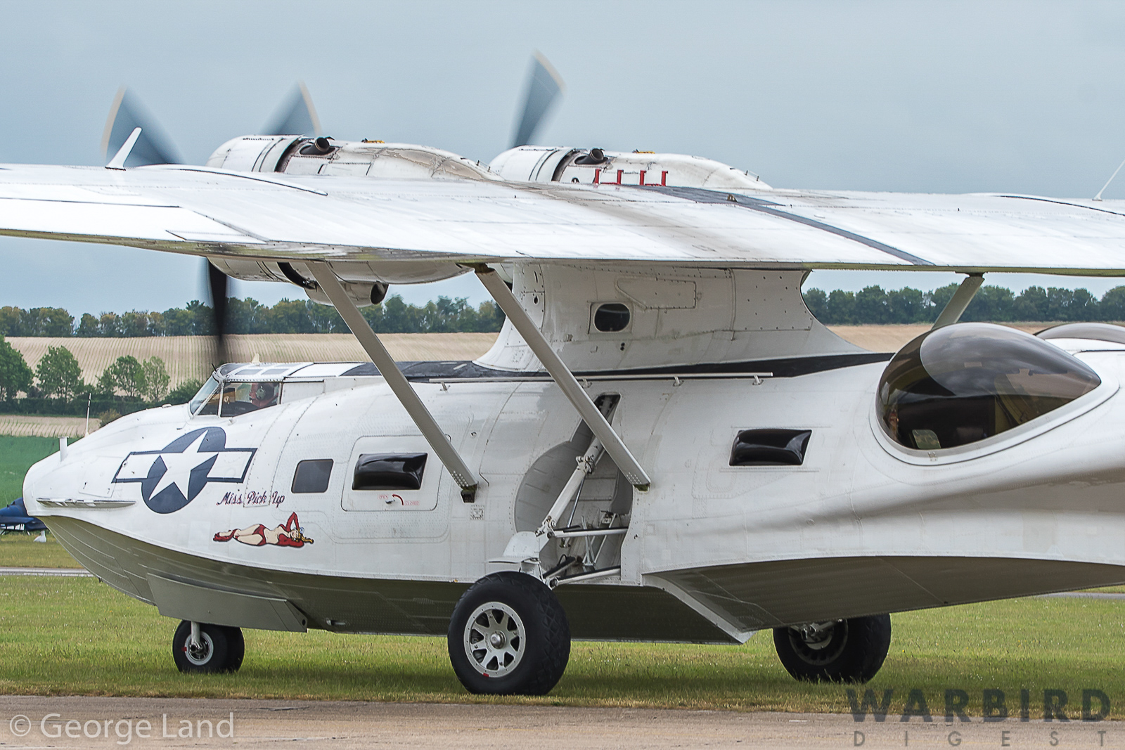Touching down at Duxford – Canadian Vickers PBY-5A Catalina (Canso) dressed as OA-10-VI, 44-33915, G-PBYA, Miss Pick Me Up, sn CV283. (photo by George Land)
