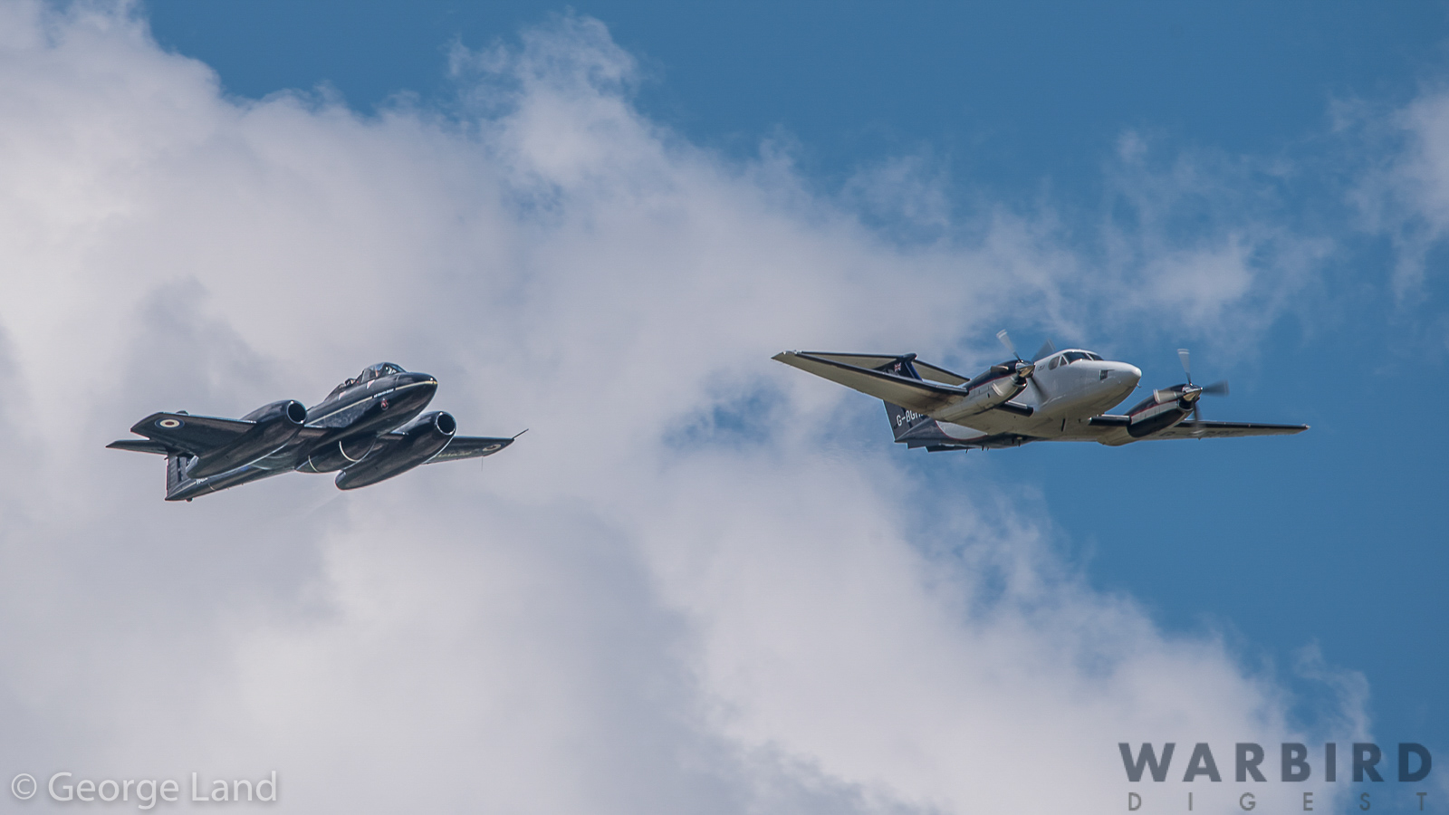 Meteor flight – Gloster Meteor Mk.T.7 (Modified) WA638, GJWMA, Martin Baker Ltd + Beech B200 Super Kingair G-BGRE, Martin Baker Ltd . (photo by George Land)