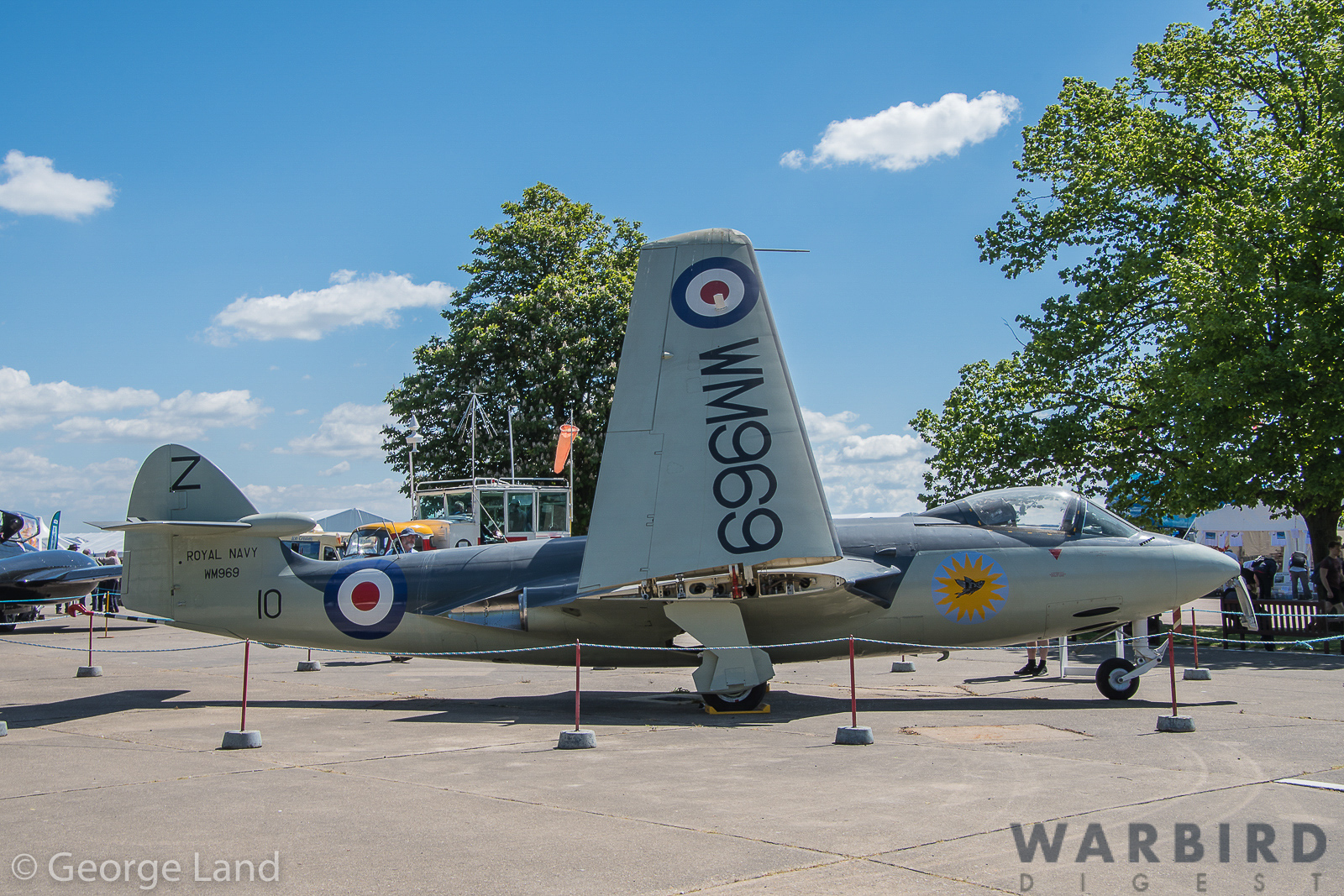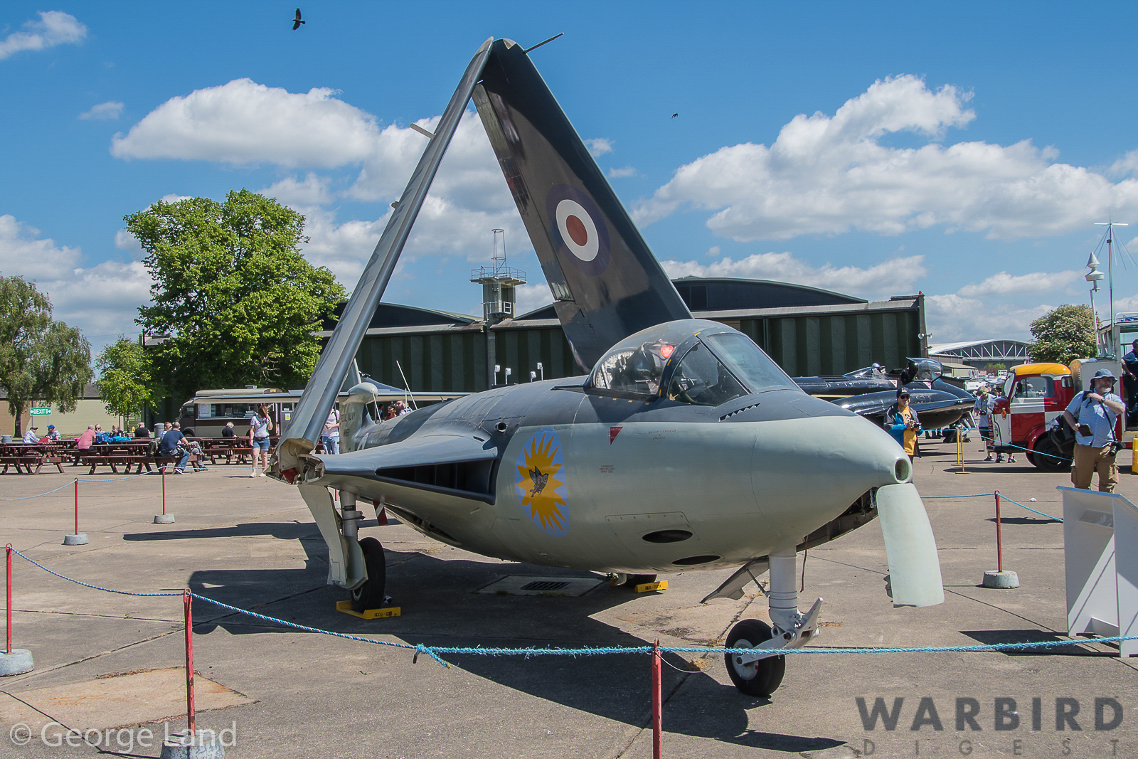 The Imperial War Museum’s Hawker Sea Hawk FB5, WM969, Fleet Air Arm 1O-Z on outdoor static display for the show. (photo by George Land)