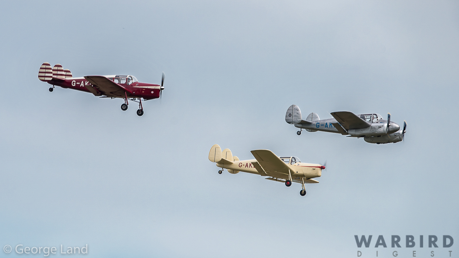 Miles M.65 Gemini 1A, sn 6519 G-AKHP, Miles M.38 Messenger 2a, sn 6378, G-AKBO, Miles M.38 Messenger 2a, sn 6728, G-AKIN. (photo by George Land)