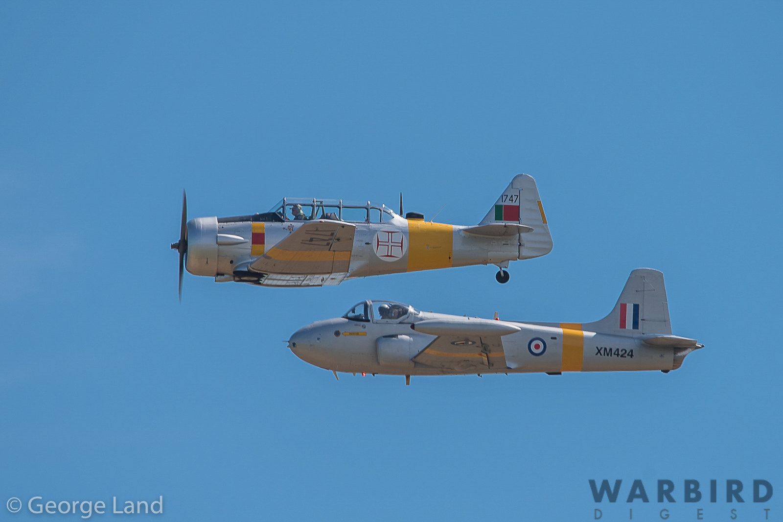 NA CCF AT-6J Harvard Mk.4, 53-4619 FAP 1747, G-BGPP, Taz & Percival Hunting P-84 Jet provost.T3A, XM424, G-BWDS. (photo by George Land)