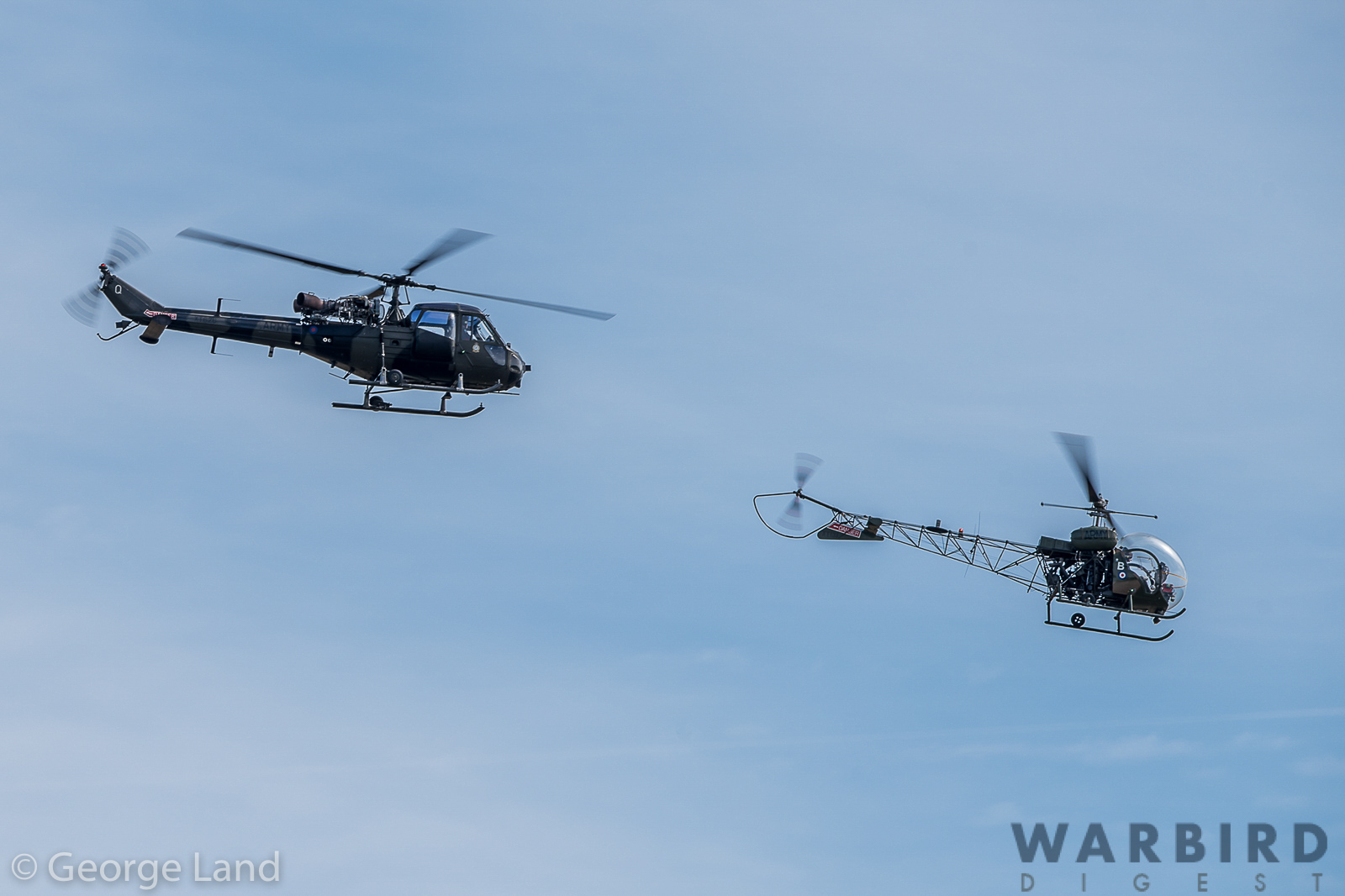 Westland Scout AH1, XT626, Q, G-CIBW + Bell-Westland 47G Sioux AH1, XT131, B, G-CICN, Army Historic Aircraft Flight. (photo by George Land)