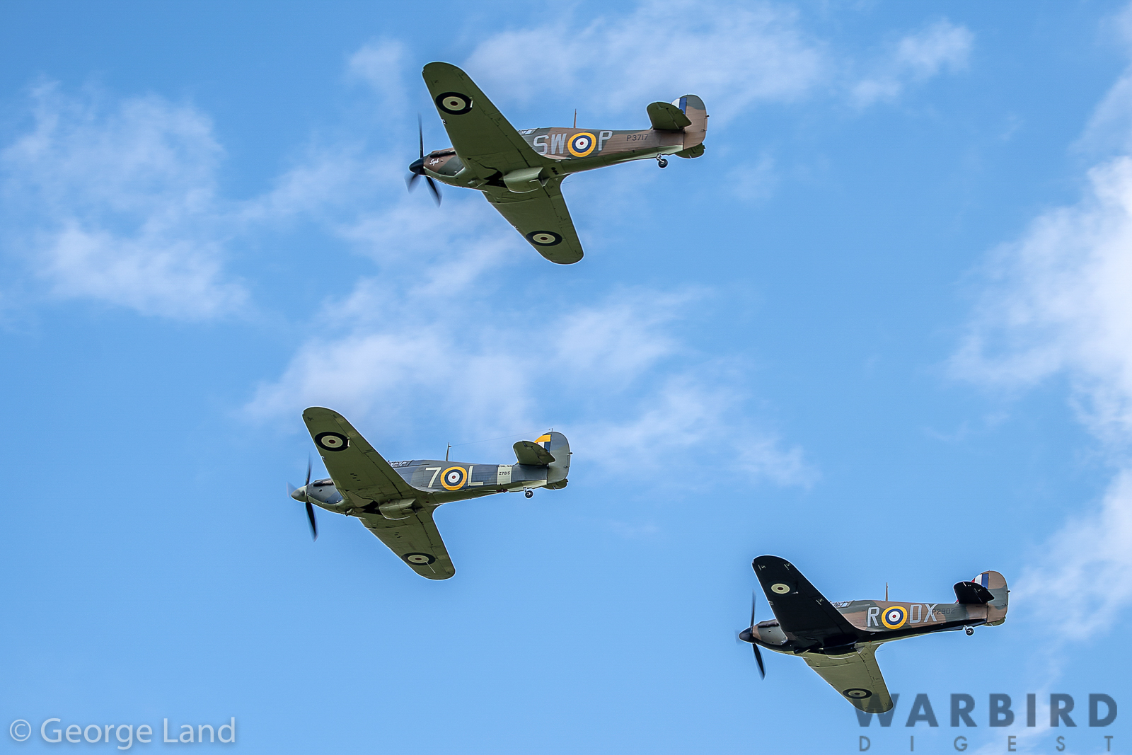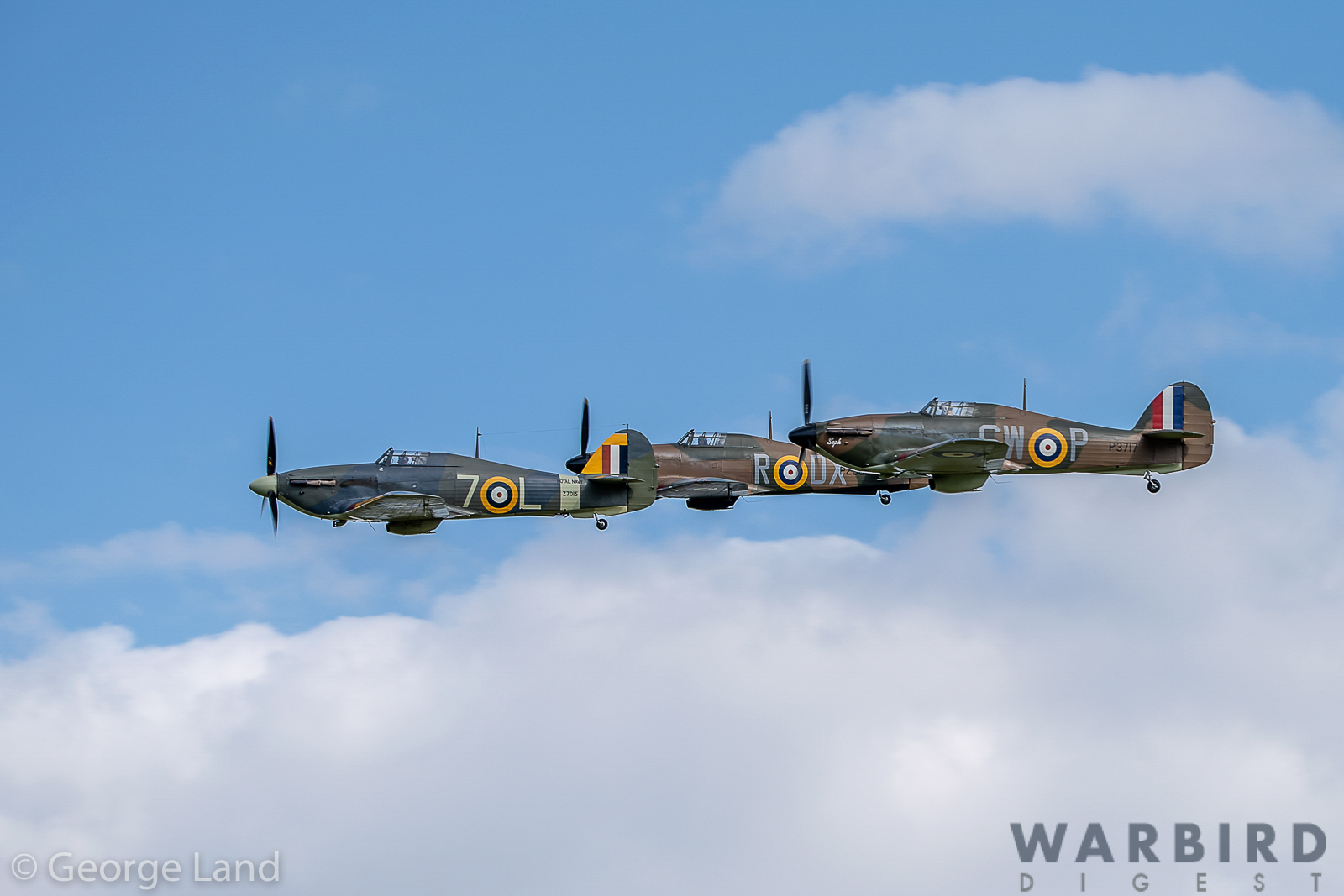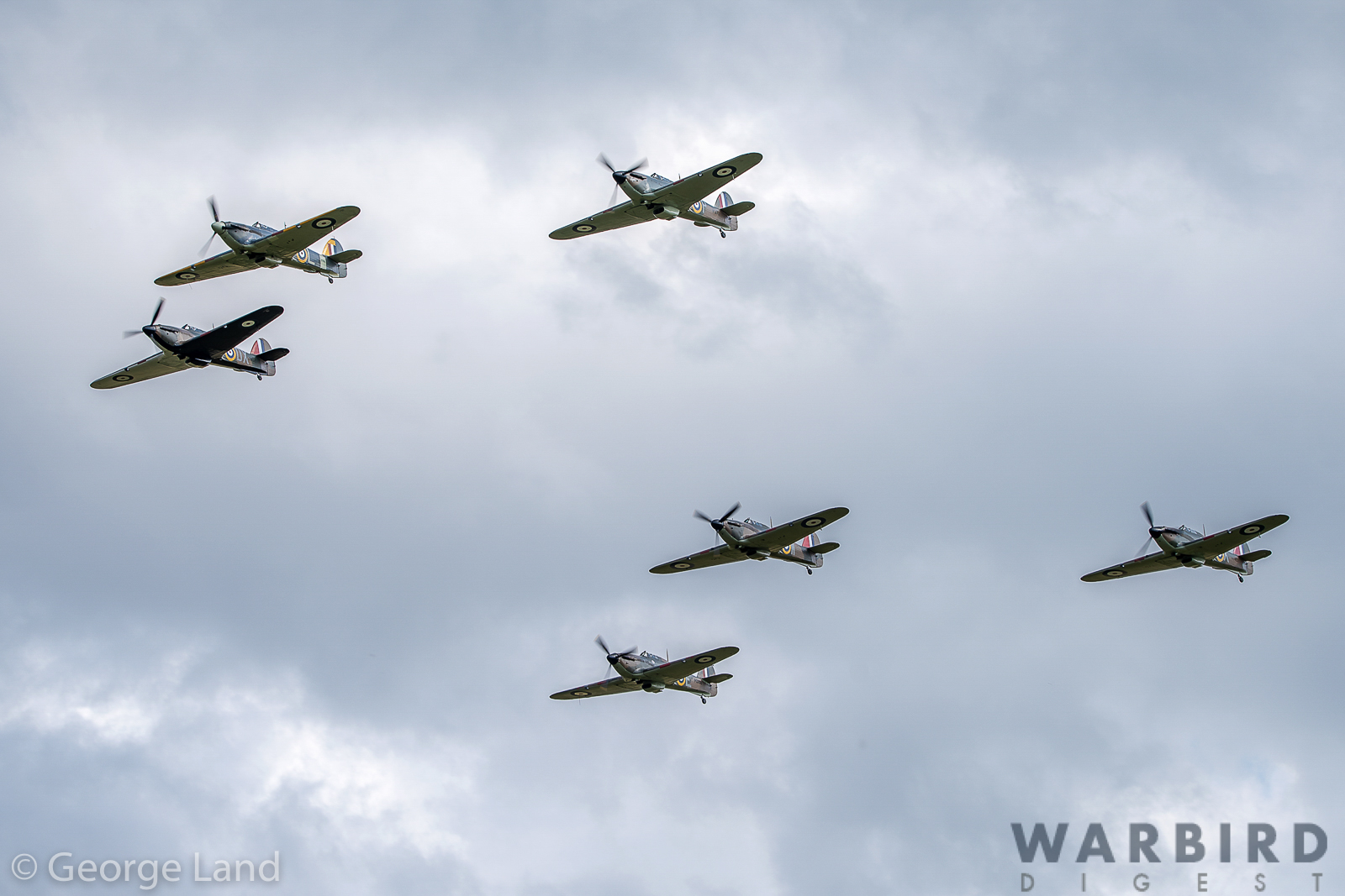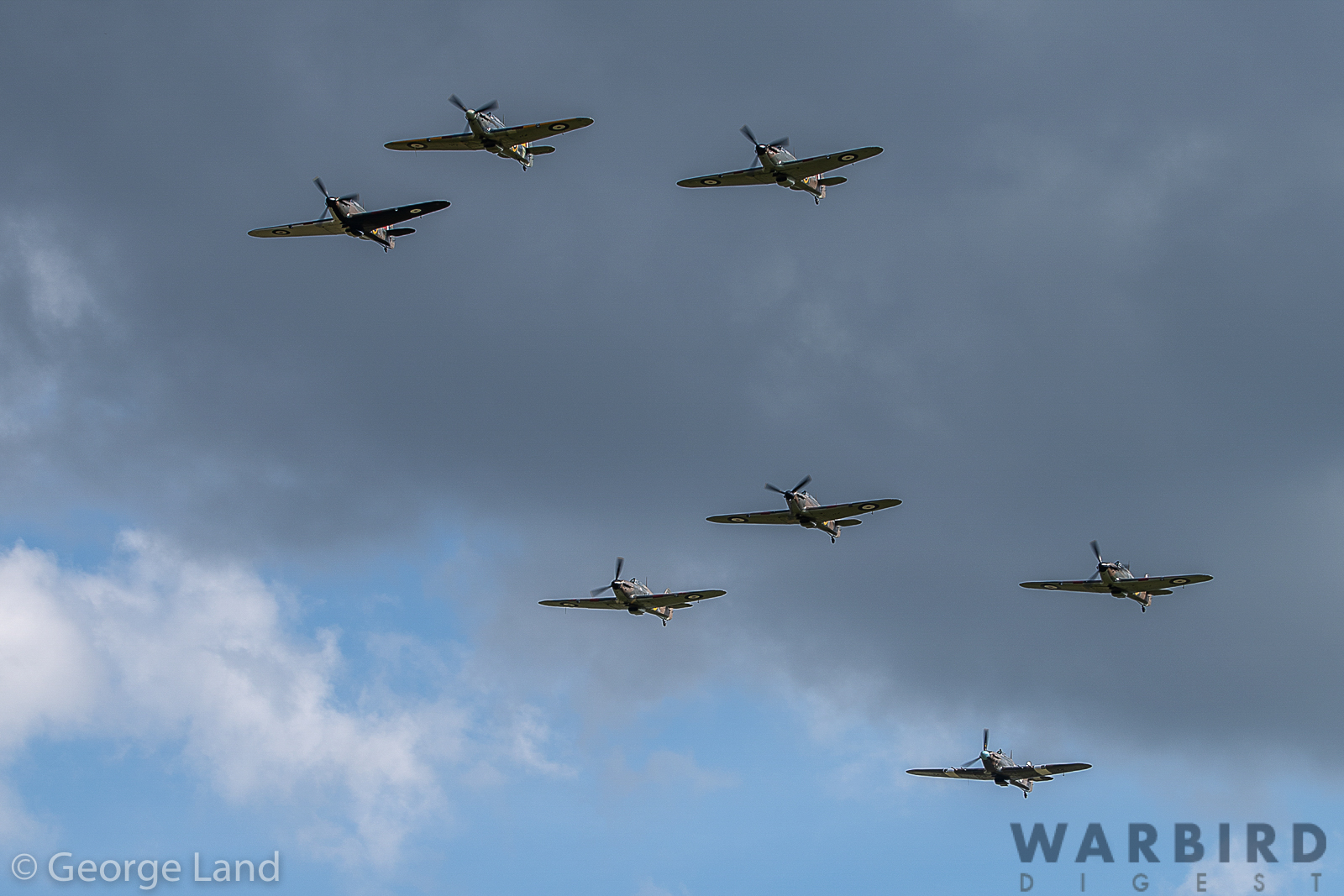 The formation was split into two vics of three, appropriately labeled A Flight and B Flight with a lone Hurricane in trail to make up the seven Hurris. The aircraft in attendance were as below. Click the serial number for further details…