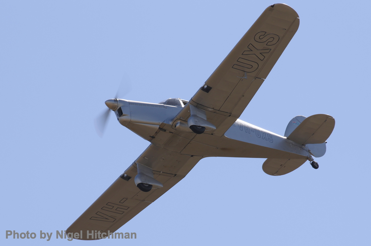 Sadly the Curtiss Robin did not fly, but the Ryan STM in Dutch Netherlands East Indies colors and the Percival Proctor VH-UXS demonstrated the classic light aircraft scene, the Proctor making its first public airshow display since restoration by Latrobe Valley Airframes & Welding Pty Ltd.