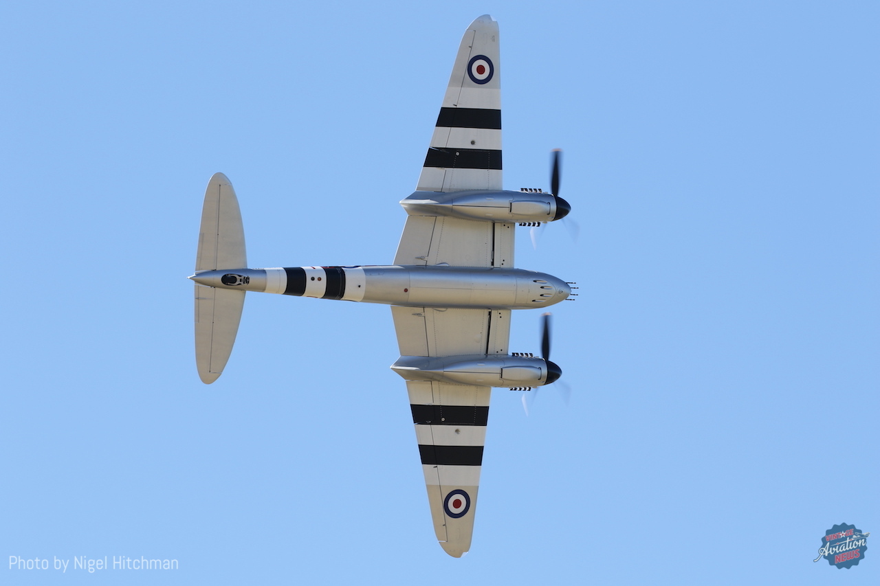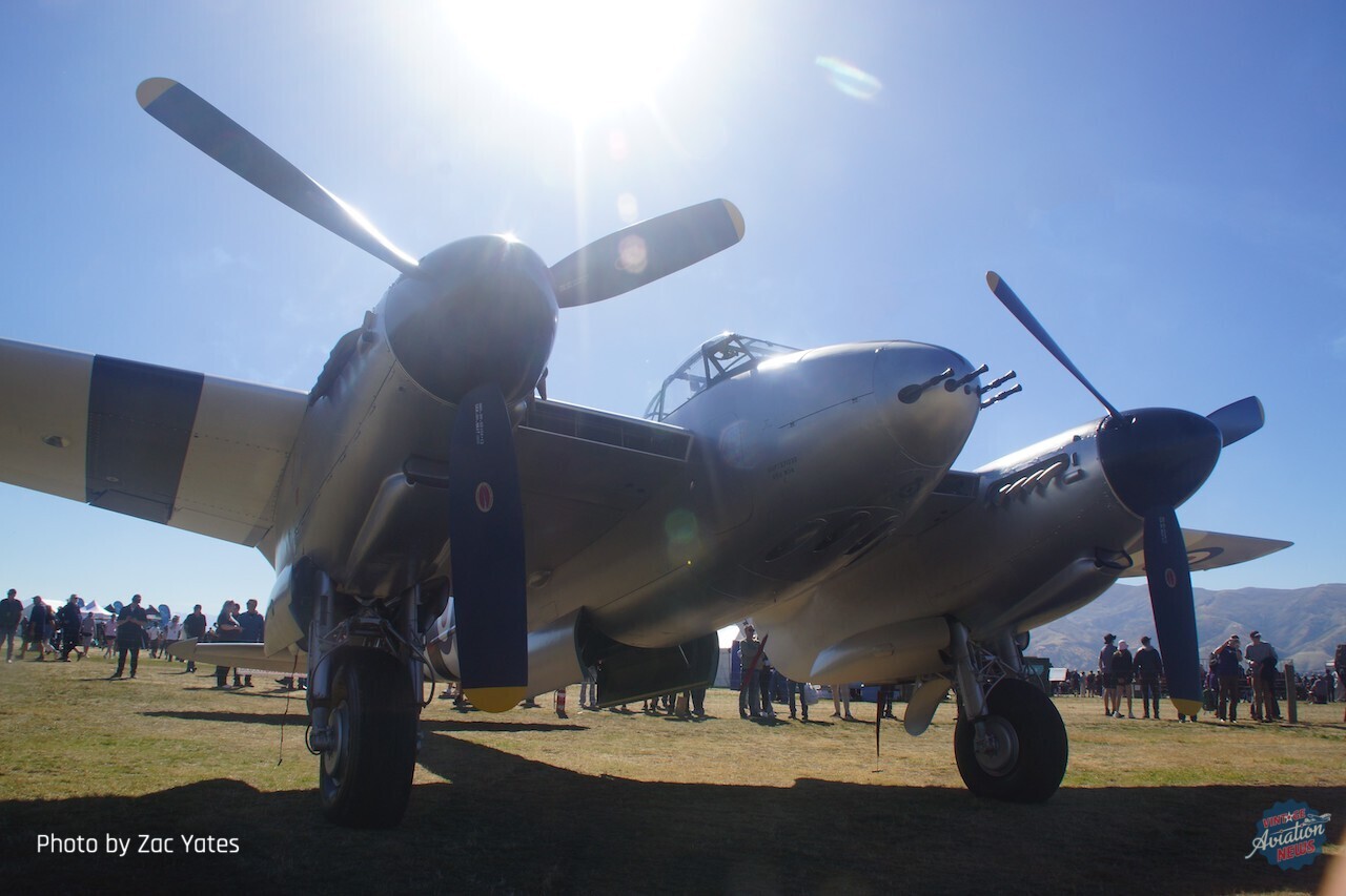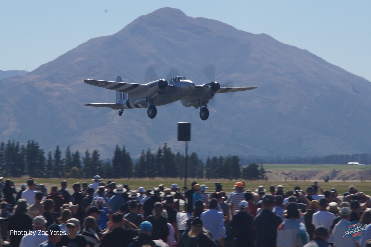 Hinton told Vintage Aviation News that NZ2308 flew as “straight” as the other two examples restored by Avspecs Ltd that he had flown, and that having been at WOW as a spectator 20 years ago it was a thrill to finally display at the show. Avspecs co-founder and owner Warren “Wal” Denholm told us that it was a privilege to bring this particular Mosquito (whose storied history was detailed by Dave Homewood for Vintage Aviation News late last year) to Wanaka and be able to showcase it at the airshow. While the unusual color scheme of postwar RNZAF roundels and D-Day stripes has been the subject of much discussion online, Wal told us that the hybrid scheme was a compromise to pay tribute to the aircraft’s original identity (including its RNZAF serial and 75 Squadron codes) and to make it more visually engaging.