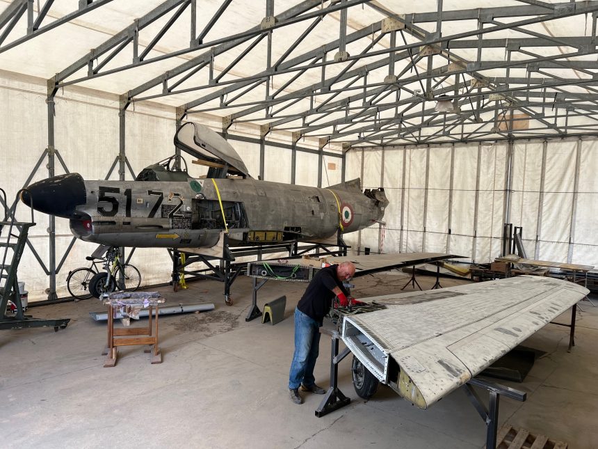 In 1988, the aircraft was acquired by Angelo Gemmo, owner of Metalsider in Noventa Vicentina, and displayed in the company’s yard. A decade later, it was donated to the Vicenza Frecce Tricolori Club for inclusion in an aviation history museum at the Dal Molin military airfield. However, the closure of the airport in 2008 led to the museum’s dissolution. Despite efforts to preserve the collection, no new location could be secured. As a result, the Vicenza Frecce Tricolori Club distributed much of its collection to other institutions, entrusting the F-86K—its most significant exhibit—to Base Tuono, along with several additional artifacts that will now be displayed alongside the F-104S Starfighter.