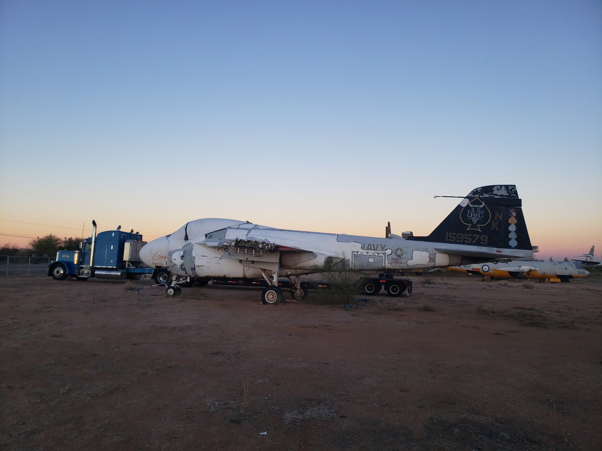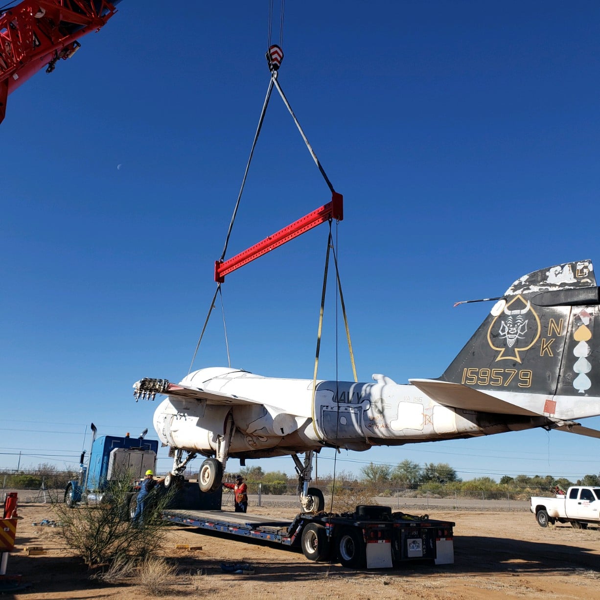 Following the recent announcement about the acquisition of the F-117 Nighthawk, the Castle Air Museum in Atwater,CA had a significant aircraft arrive on Friday, March 5th. The aircraft is a Grumman A-6E Intruder and is the last to have flown in the U.S. Navy. The Intruder that was loaded for delivery on March 7th at the Pima Air Museum for delivery to the Castle Air Museum. This acquisition was made possible thanks to the partnership between the museum and the A-6 Intruder Association. The mission commitment of Intruder Association is to preserve and promote the legacy of US Navy and Marine Corps A-6 Intruder Community, keep others informed of the A-6 aircraft mission and accomplishments, and provide for continued camaraderie among all those who flew and supported the aircraft and its squadrons.
