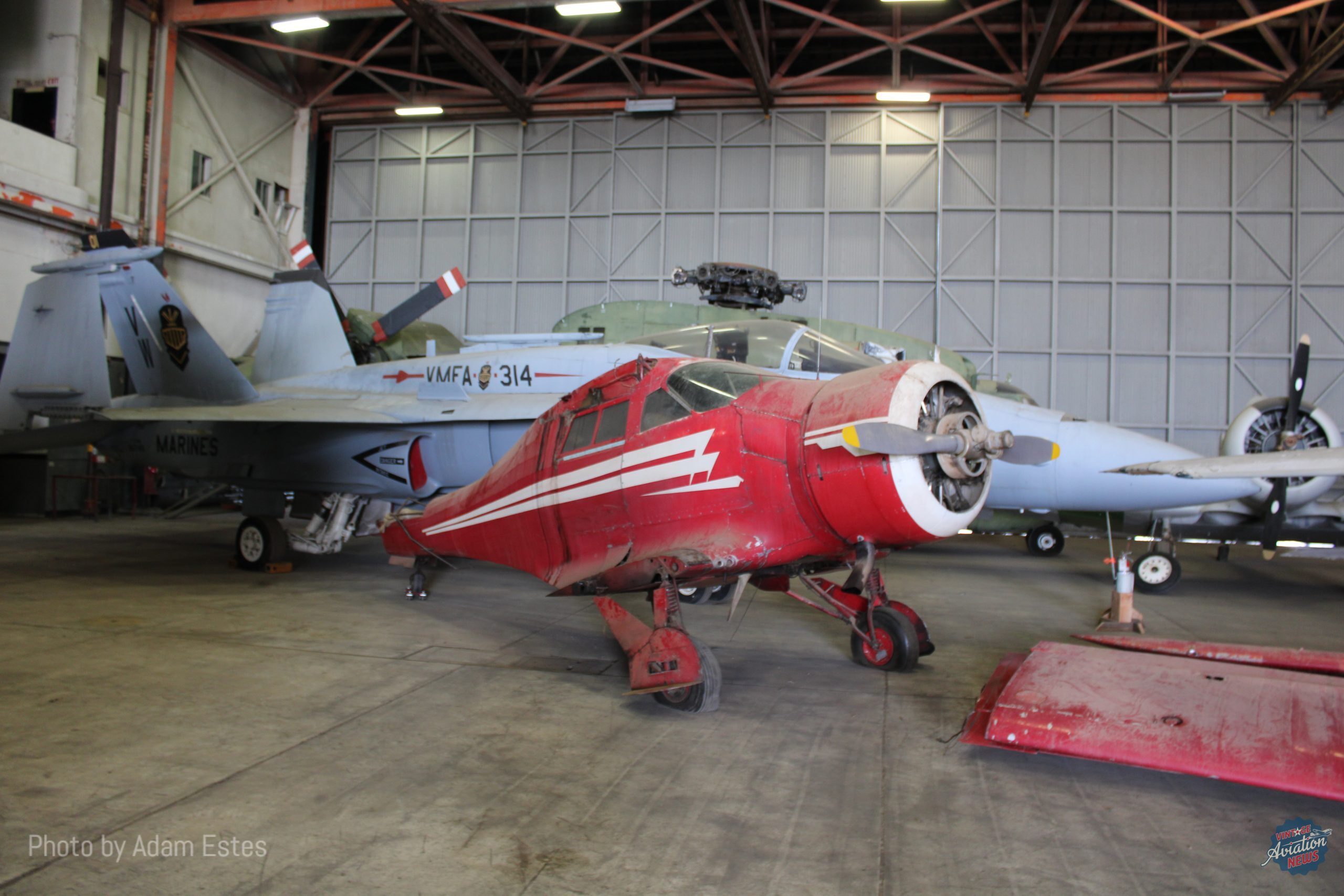 Besides the airplanes that have been transported from the old museum at Miramar, the FLAM has welcomed some new aircraft as well. One of these has been a Beech Staggerwing with the N-number N28A, which was flown by Gordon “Rocky” Warren in aerial mapping flights for the US Geological Service and in a 1975 FAA training film on mountain flying, and it was Rocky’s son Mike who sold the aircraft to the museum. However, the aircraft had originally been built during WWII and was flown by the US Army Air Force as serial number 44-67752, British Royal Navy as FT498, and the US Navy as Bureau Number 32892 before it was stricken from the USN’s inventory on July 31, 1946, and becoming surplus for the civilian market.
