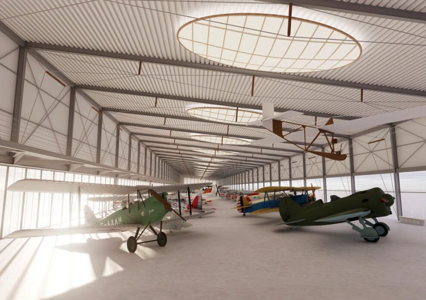 – A 500-square-meter area on the south side will house offices and an event room with a large window overlooking the hangar.