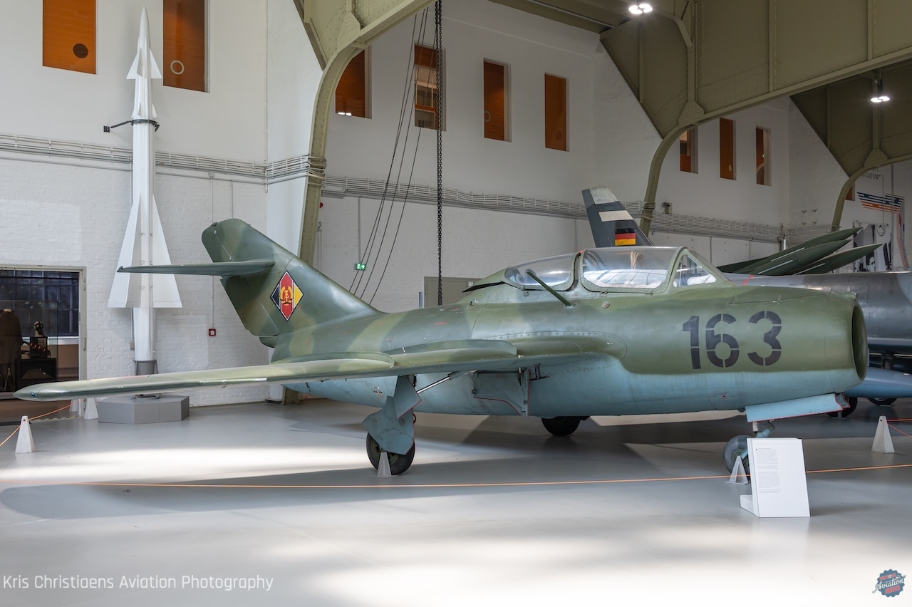 At the heart of the museum’s indoor exhibitions are two converted hangars—Hangar 3 and Hangar 7—which provide something the outdoor displays cannot: context and depth. While the runway exhibits convey the physical scale of the aircraft, the hangars invite visitors to explore the technological and historical narratives behind them. Several original RAF-era structures have been preserved and adapted into exhibition halls. Their expansive interiors house carefully curated displays combining aircraft, engines, weapons systems, radar equipment, and extensive archival material, including flight suits, instruments, photographs, and documents. The museum’s curatorial approach emphasizes more than simply displaying aircraft. The exhibits trace the technological evolution of aviation while placing each development within its broader political and military context, exploring not only how the machines worked but why they were built. One of the most striking aircraft displayed indoors is the Messerschmitt Me 163 Komet. Even decades after its creation, the rocket-powered interceptor still appears startlingly futuristic. As the world’s only operational rocket-powered fighter aircraft, the Komet represented one of the most radical technological experiments of the Second World War. Its compact fuselage, swept wings, and volatile rocket propulsion system demonstrate the extreme engineering ambition pursued by German designers during the war’s final years. The hangars also present a fascinating juxtaposition between Cold War adversaries. NATO aircraft stand near those operated by the former East German air force, including examples from the Mikoyan-Gurevich MiG family. This arrangement invites visitors to compare the technological philosophies of Western and Soviet aviation industries during the same decades, offering two different approaches to the same geopolitical challenge.