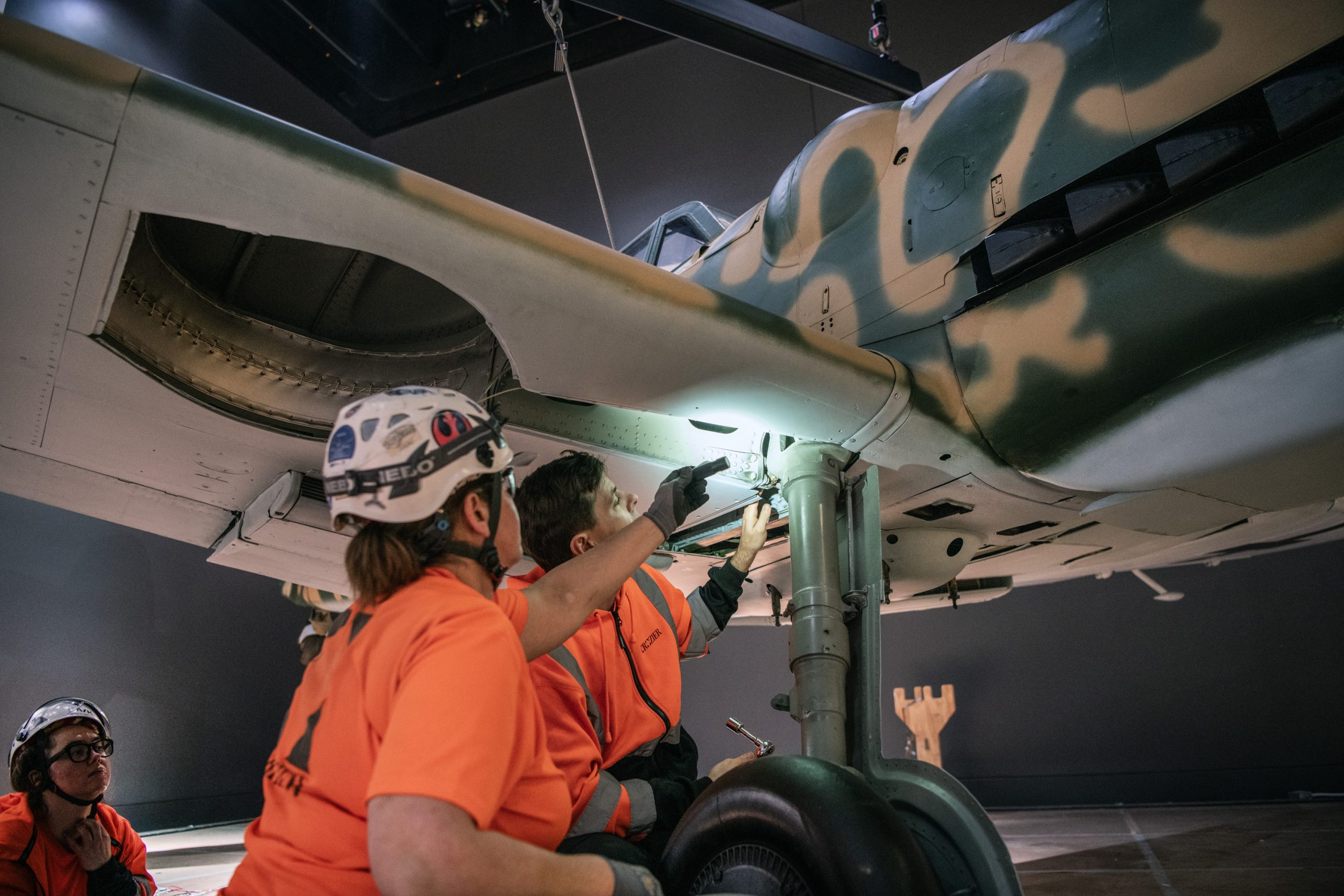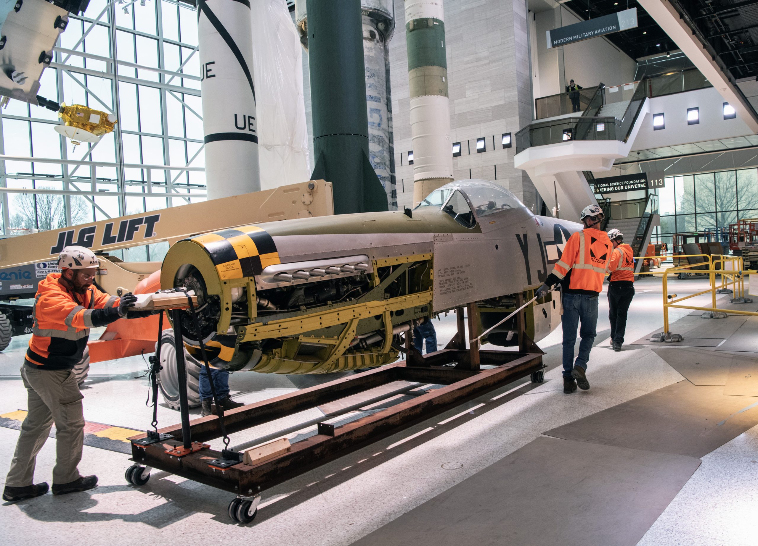 Since the opening of the first renovated galleries in 2022, contractors have been hard at work installing numerous aircraft, spacecraft, and micro-artifacts in the renovated galleries set to open within this year and the next. During the renovation of the building’s infrastructure, these items were shipped to the National Air and Space Museum’s Steven F. Udvar-Hazy Center in Chantilly, Virginia, where they were placed in storage and refurbished, with some air and spacecraft being placed on temporary display. Some items have also been moved from the Udvar-Hazy Center to go on display on the National Mall, such as the museum’s original Sopwith Camel, donated through the estate of WWI aircraft collector Javier Arango, which will be in the new World War I gallery set to open this July.
