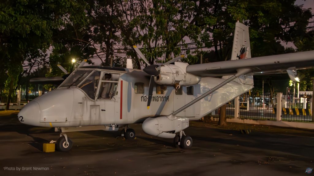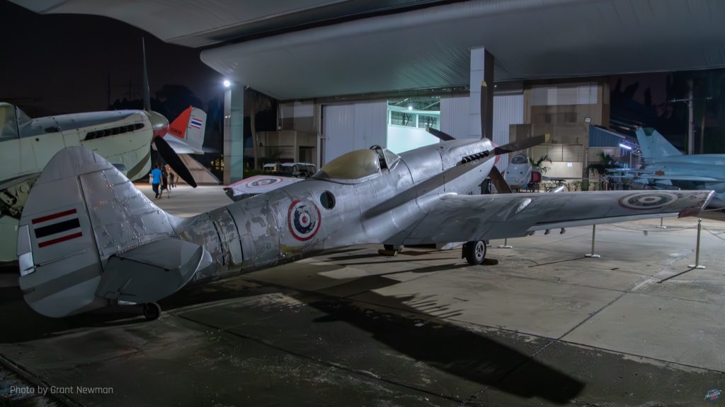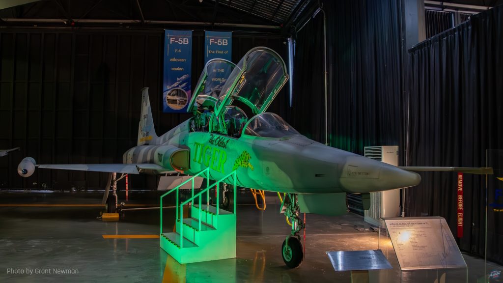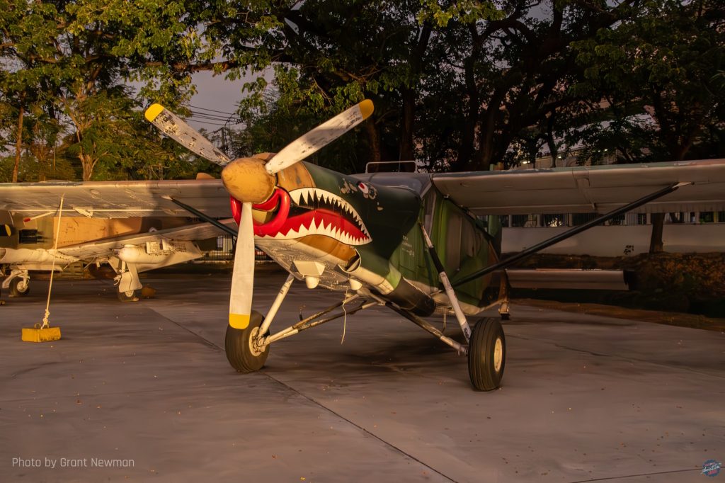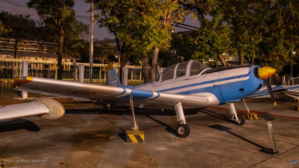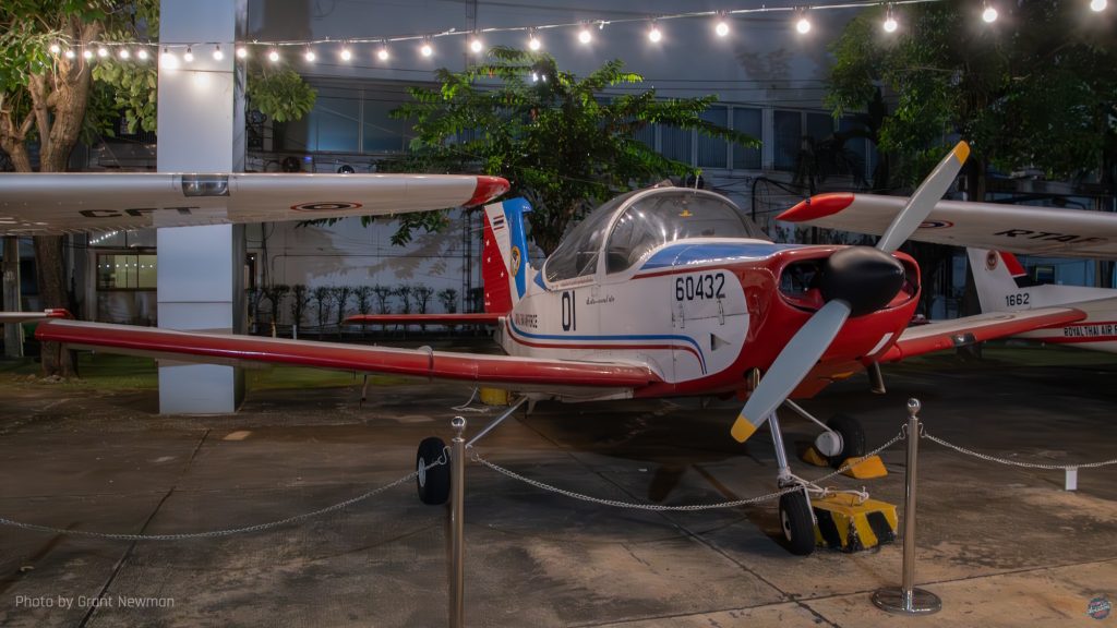 This Cessna A-37B Dragonfly wears the decorative nose art applicable to 211 Squadron, whose emblem of a diving bird-of-prey can be seen on the fin. The first A-37s arrived with the RTAF in 1973 and were retired in 1996. This one arrived at the museum in April 2010. [Grant Newman]Bought to replace the RTAF’s dwindling supply of Nakajima Ki-43s in 1950, 29 Supermarine Spitfire FR.XIVes came second hand from the Royal Air Force, of which 24 were brought to airworthy condition. Four Spitfire PR.XIXs saw limited service for a year only from 1954, suffering poor serviceability. This aircraft was placed in the museum and noted in 1967 after being rescued from a children’s playground. [Grant Newman]Built specifically for the United States Air Force to a programme named Credible Chase, the Fairchild AU-23A Peacemaker was an armed counter-insurgency aircraft based on the Pilatus PC-6 Turbo Porter. First flying in 1971, all former USAF examples went to the RTAF, this one arriving at the museum in November 2020. [Grant Newman]The Northrop F-5 Freedom Fighter had a troubled existence in RTAF service, suffering a high attrition rate, although the F-5E Tiger II fared somewhat better, with examples still in service having received system upgrades. This F-5B is reputedly the oldest two-seat early model F-5 in existence and was delivered to the museum in 2007; the museum also has the oldest F-5A. [Grant Newman]This is the RTAF-4 Chanthra, an indigenous trainer designed and built by the RTAF’s Science and Weapon Systems Development Centre. Loosely based on the de Havilland Canada DHC-1 Chipmunk, 12 examples were built, of which the prototype first flew in 1972. [Grant Newman]One of a small number of North American F-86L Sabre Dogs in RTAF, service, the type was not well received and proved particularly complex, suffering low serviceability. This resulted in a brief service career of five years. This one was first noted at the museum in 1971. [Grant Newman]The last surviving example of a Vought O2U airframe left, this V-93S Corsair was one of an estimated 130 examples operated by the RSAF and from 1939 and the renaming of Siam as Thailand, the RTAF. Most of these were manufactured under licence, of which this is an indigenous airframe, possibly the earliest surviving locally manufactured aircraft. [Grant Newman]A Royal Thai Navy Hawker Siddeley AV-8S Matador, one of nine examples, seven single-seaters and two two-seater TAV-8S received from the Spanish Navy for operation aboard the aircraft carrier HTMS Chakri Naruebet. Although the carrier is still in service, the Matadors were retired in 2006 following a career hampered by a lack of spares support, resulting in a small number of operational aircraft at any given time. It is reported that by the early 2000s, the aircraft were rarely deployed to sea owing to fleet unserviceability. This aircraft arrived at the museum in June 2017. [Grant Newman]The Boeing 100E biplane fighter is based on the F4B and this example is the oldest surviving Siamese/Thai military aircraft. Two were bought in 1929 to participate in a fly-off with other types, including two Bristol Bulldogs for a single-seat fighter to replace the obsolescent Nieuport-Delage NiD-29s still in service. Ultimately, neither type was ordered; 12 Curtiss Hawk IIs were bought as the Siamese Air Force’s (RSAF) replacement fighter two years after the evaluation took place. [Grant Newman]This NZAI CT/4A Airtrainer was one of 24 bought for the RTAF following selection of the type as its primary trainer following evaluation of the Pazmany PL-2, of which the sole example in RTAF service is within the museum. While the CT/4A has been retired, the CT/4E remains in RTAF service. This aircraft arrived at the museum in July 2020. [Grant Newman]Acquired in 1991, the Pilatus PC-9 was the RTAF’s intermediate trainer following basic training on the CT/4 Airtrainer, remaining in service until 2023 when replaced by the Raytheon Beech T-6 Texan II. There are currently two examples on public display, with a third derelict airframe out of the public display area. [Grant Newman]The sole example of the 200-Series 737 operated by the Royal Thai Air Force (RTAF), this Boeing 737-2Z6 was bought in 1983 for the express purpose of transporting the Monarch and his family. Later impressed into conventional VIP service with 602 Sqn, the aircraft was placed in the museum in Oct 2013. [Grant Newman]The first all-metal monoplane fighter in RTAF service, 12 Curtiss Hawk 75Ns were received in 1938 and in World War Two, the dwindling number of aircraft fought in anger against aircraft of the Vichy French, the Japanese and the United States. The type was supplemented and replaced by Nakajima Ki-27 Ota (as the type was named in Thai service) and Ki-43 Hayabusa during the war. [Grant Newman]Interestingly, the RTAF’s Beech Expediters were ex-Royal Air Force airframes left behind in India after World War Two. A total of nine Twin Beeches were operated by the RTAF until 1971. [Grant NewmanThe sole survivor of the numerous Japanese airplanes operated by the RTAF during World War Two, this Tachikawa Ki-55 was one of 24 acquired in 1942 from Imperial Japanese Army stocks in Manchuria at the same time as the RTAF received its Ki-27 Ota fighters. Nicknamed the Tachigawa in Thai service, the Ki-55s were based at Don Muang and reportedly by the end of the war, only two remained usable. [Grant Newman]Based on the Nomad STOL utility aircraft, 20 GAF N-22B Missionmasters were bought for the RTAF in 1981, remaining in service for the next forty years. This example was received by the museum in December 2015. [Grant Newman]Around 128 North American T-28 Trojans were used by the RTAF, with first deliveries in 1962. Although a training type, with the RTAF the T-28 was primarily used as a ground attack aircraft, the last being retired in 1988. This one arrived at the museum in May that year. [Grant Newman]