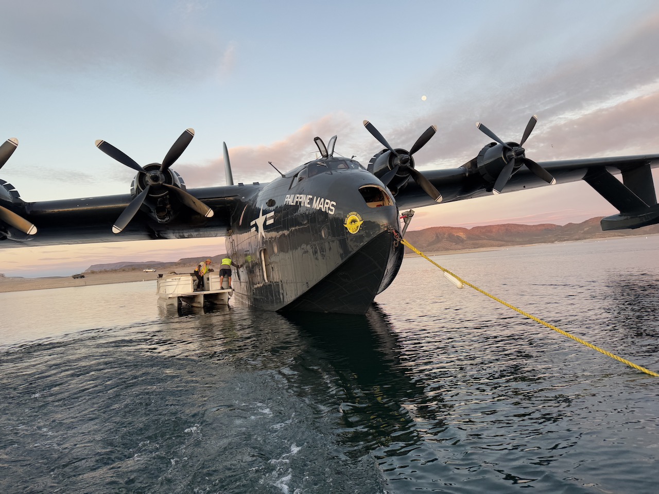 After overcoming several hurtles from mechanical difficulties to unpredictable weather, Philippine Mars made its final, epic flight in February 2025. Flying from Sproat Lake, British Columbia, it made a stopover in San Francisco, where it had previously flown out of during its naval service, but a planned stopover in San Diego was set aside in favor of a direct flight to Lake Pleasant, just northwest of Phoenix, Arizona, where it landed on the afternoon of February 10, 2025. Almost immediately, the Philippine Mars was towed to the boating docks on the southern shore of Lake Pleasant, and contractors from Southwest Industrial Rigging carefully disassembled the massive flying boat piece by piece and transporting the massive aircraft in truckloads to Tucson.
