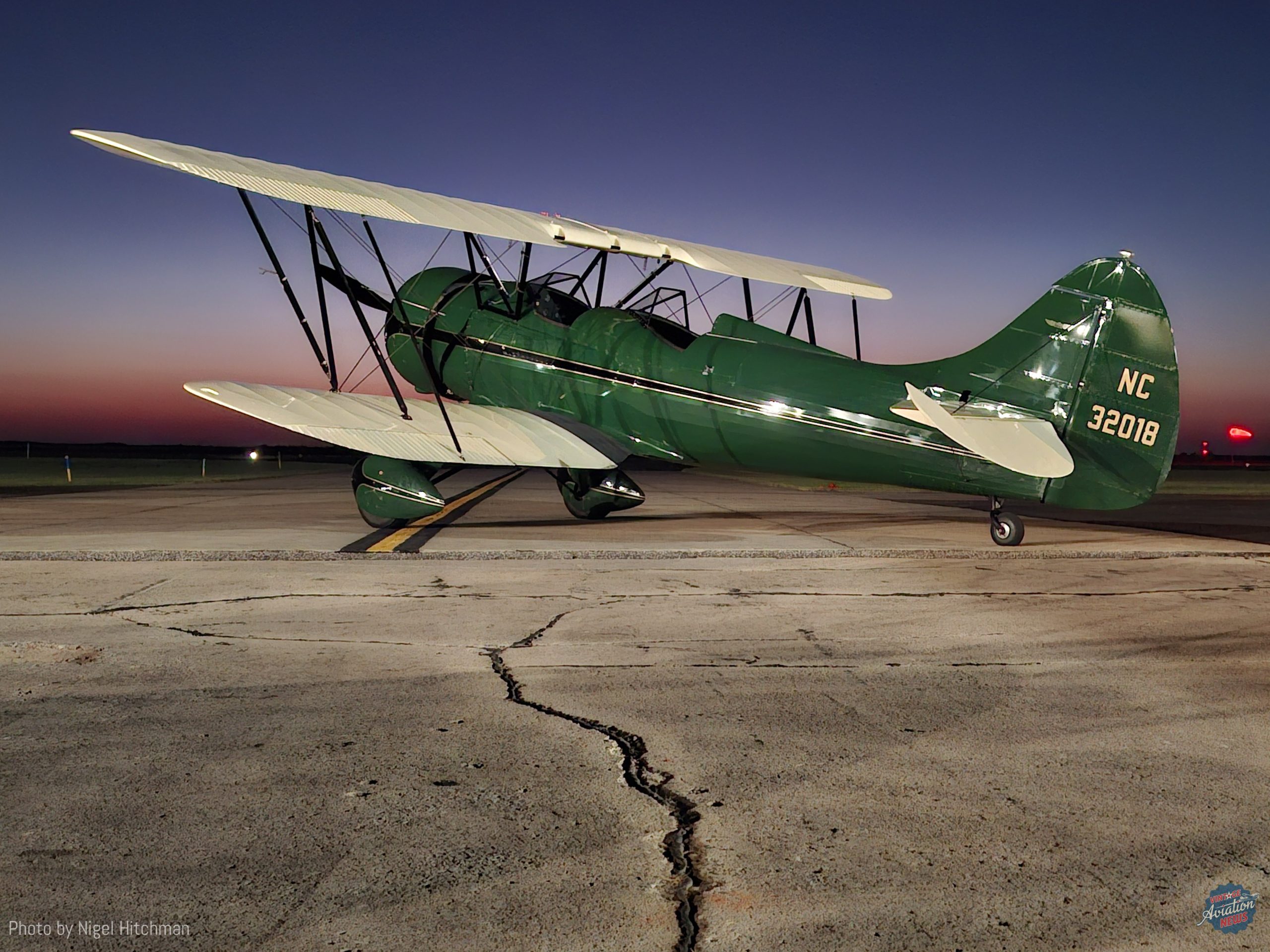 The Curtiss-Wright B-14R Speedwing (NC12311) also drew attention—one of only two airworthy examples in existence, with the other owned by Walt Bowe. A third aircraft was nearing completion before its owner’s passing earlier this year. Pilot Clay Hammond gave a superb sunset flying display in the Speedwing during the opening celebration.