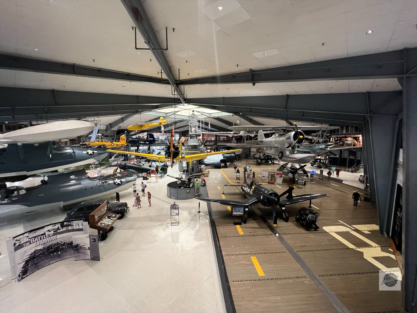 As the museum expanded physically, its collections and exhibits grew significantly. The museum became active in the recovery and restoration of historic aircraft, pulling rare warbirds from Lake Michigan and the Pacific Ocean, including the only surviving Vought SB2U Vindicator and a Battle of Midway SBD-2 Dauntless. Immersive exhibits such as Home Front USA, Pacific Air Base, and The Hangar Bay bring history to life, allowing visitors to step into recreated settings from World War II. In 1992, the museum opened the Emil Buehler Naval Aviation Library, which houses an extensive collection of more than 7,000 volumes, 350,000 photographs, and numerous letters, manuscripts, and technical manuals.
