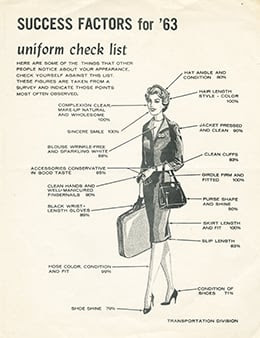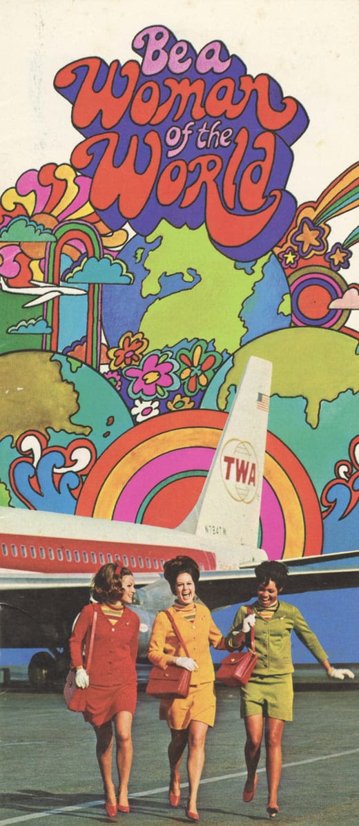 A total of 13 uniforms from eight airlines are featured, many from the 1960s and 1970s, when airlines began working with well-known designers to define their public image. Designers such as Emilio Pucci, Jean Louis, Valentino, and others contributed to uniforms that ranged from conservative looks to more experimental styles, including bold colors, capes, and even go-go boots.