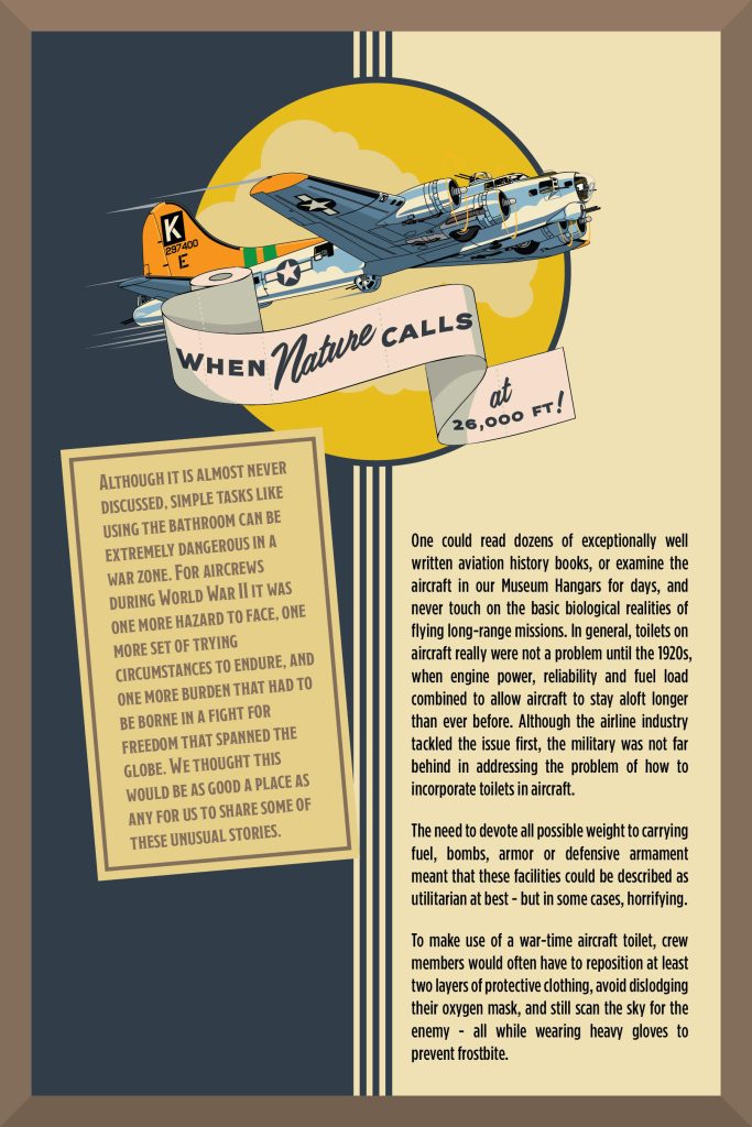According to Museum Director and CEO Keegan Chetwynd, the idea sprang from a desire to make history feel personal and accessible. “Learning is at the heart of everything we do here,” said Chetwynd, “but so is finding creative ways to connect our guests with the real human experiences of wartime aviation. It’s a funny question—but a completely valid one. A little out-of-the-box thinking told us the restroom was the perfect place to explore it.”