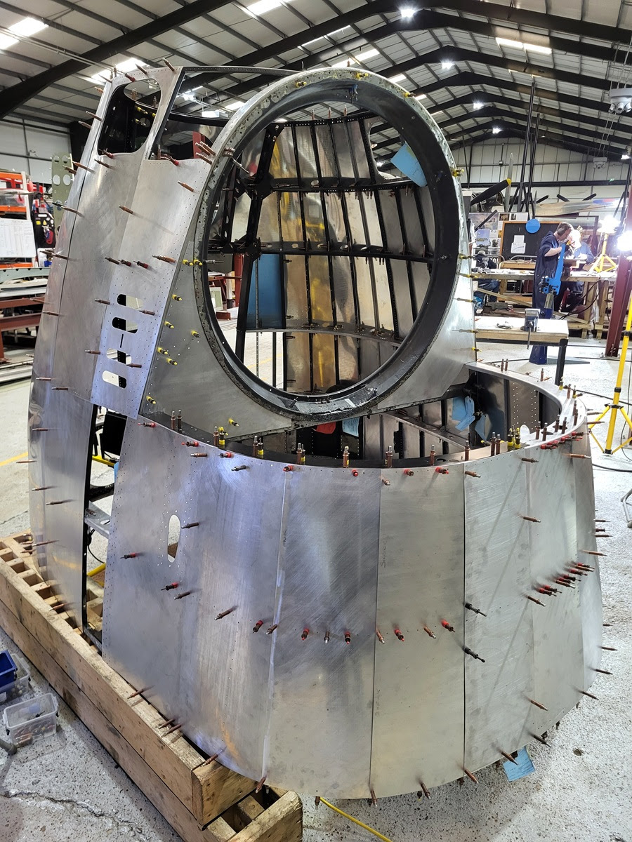 In addition to major restoration tasks, ongoing maintenance work ensures NX611 remains operational for taxiing demonstrations. Spav has undertaken repairs to one of the lower engine cowlings, where an earlier fibreglass-based repair has now been replaced with a correctly fabricated metal skin. Work is also underway to reproduce and install an internal reinforcing structure within the cowling—an example of the continuous attention required to keep the aircraft serviceable. Support for the project continues to grow through the “Wings Fund” campaign, which has now surpassed £102,700 toward its £500,000 goal. Contributions from supporters have already helped fund key components such as the newly acquired spar booms, demonstrating the vital role of public backing in advancing this ambitious restoration.