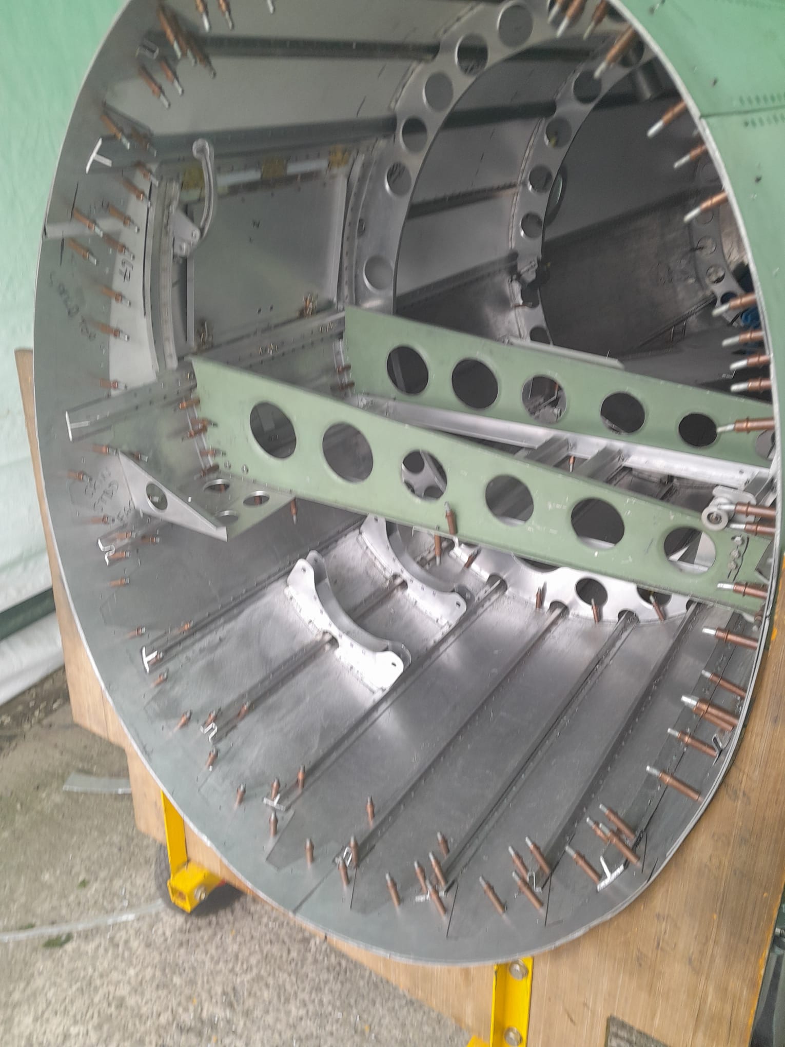 A turning point came in 2020. Faced with the financial realities of relying on commercial engineering support, the project needed a more sustainable approach. That solution emerged when retired precision engineer Pete Smith offered to take on the construction himself, working from his own workshop. What initially seemed an extraordinary proposition quickly proved transformative. Since then, progress has accelerated dramatically, supported by strengthened governance and the securing of a permanent display home at the Kent Battle of Britain Museum. Rebuilding the Whirlwind has revealed just how unconventional its original design was. Conceived by W.E.W. Petter, the aircraft incorporated advanced aerodynamic thinking that did not lend itself easily to manufacture. The cockpit and nose sections, built as a monocoque structure, contain a complex lattice of ribs and intercostals that do not form a coherent framework but instead rely on the skin and longerons for strength. To assemble these sections, bespoke jigs and tooling had to be designed and built to hold components in precise alignment while thousands of rivets were installed. The cockpit alone required approximately 2,500 rivets, along with custom spacers, ferrules, and tooling fabricated specifically for the task.