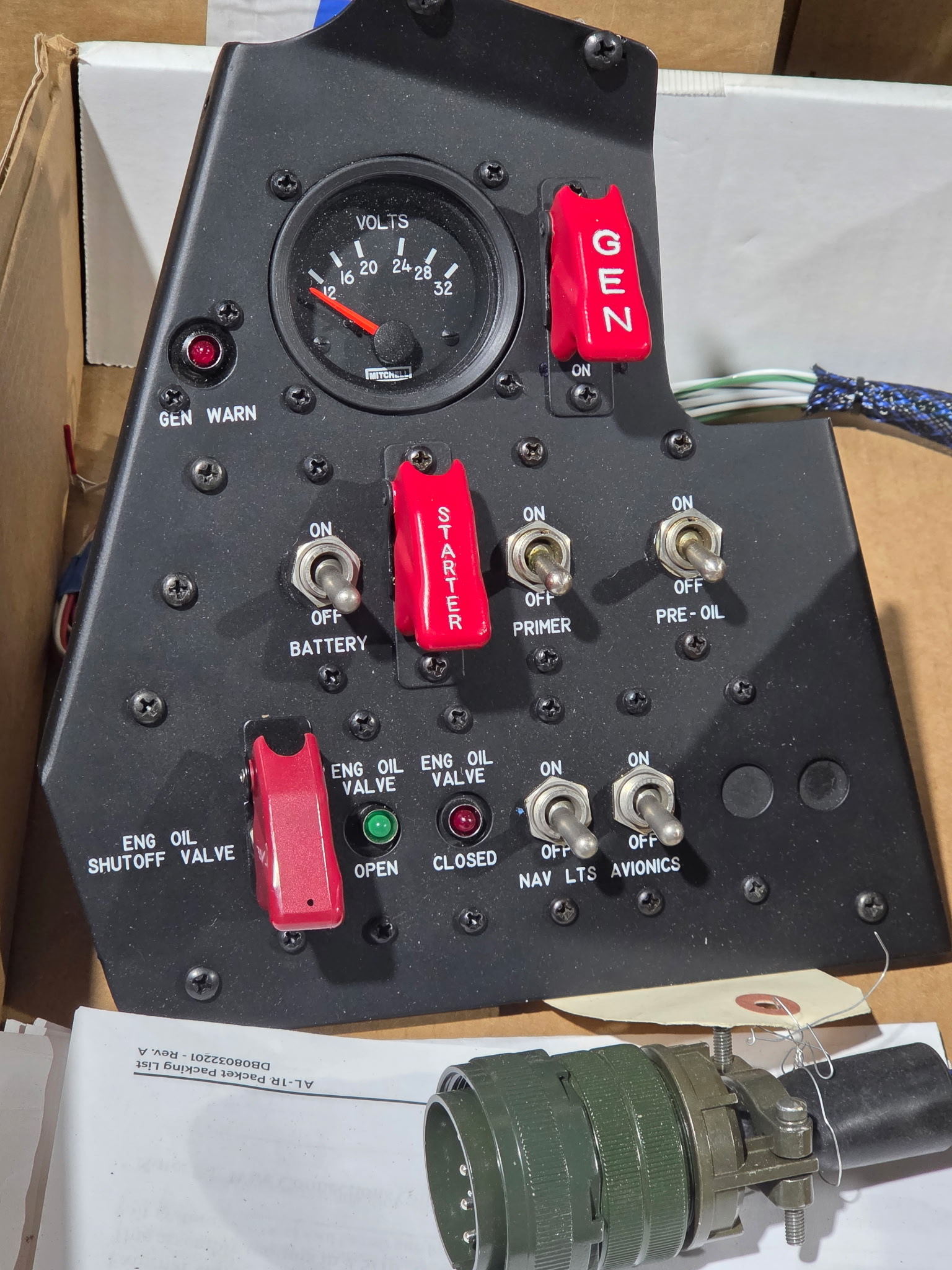 Significant progress is also being made in the cockpit. McMahon is leading the overhaul of all wiring, including replacing and repairing cable runs, overhauling existing wiring, and installing a comprehensive new avionics package. The upgrades include dual AV-30 units, a Garmin VHF radio, an in-panel GPS navigator with WAAS capability, ADS-B In for traffic, and LED lighting throughout. All placards, switch panels, and circuit breakers have been refurbished to look new, and the instrument panel is currently being finalized. The windscreen frame requires one final repair before the canopy and windscreen can be installed.