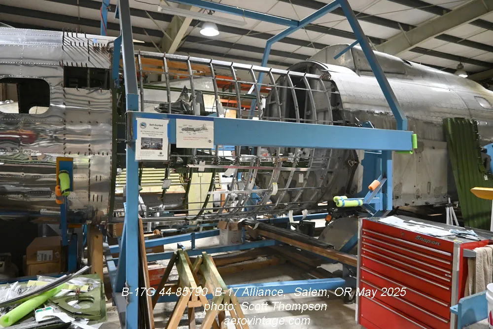 It has been quite some time since our last update on the B-17 Alliance Foundation’s remarkable effort to restore Boeing B-17G Flying Fortress 44-85790 Lacey Lady in Salem, Oregon, but thanks to Scott Thompson of Aero Vintage, we have permission to relay his latest article on the project, reproduced (with gentle editing) below.
