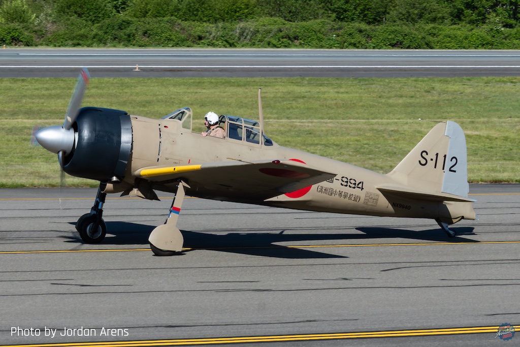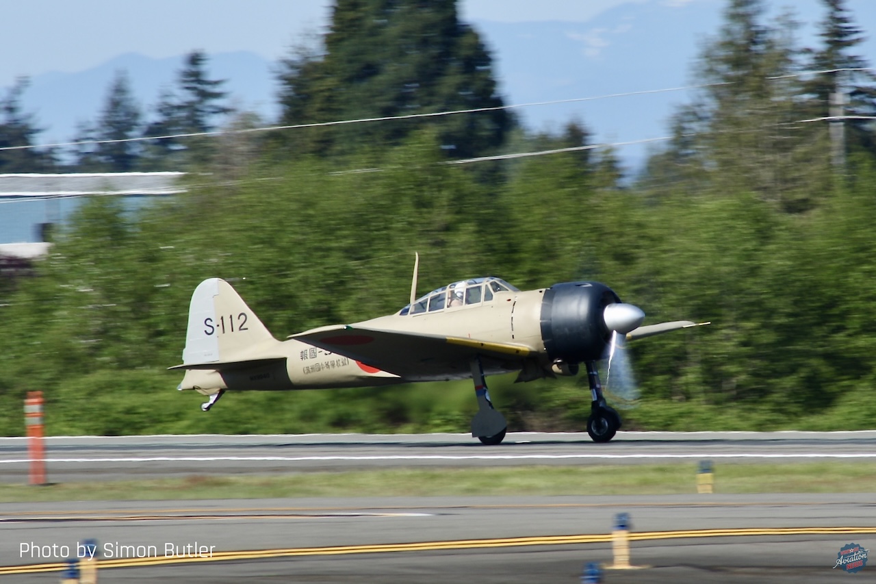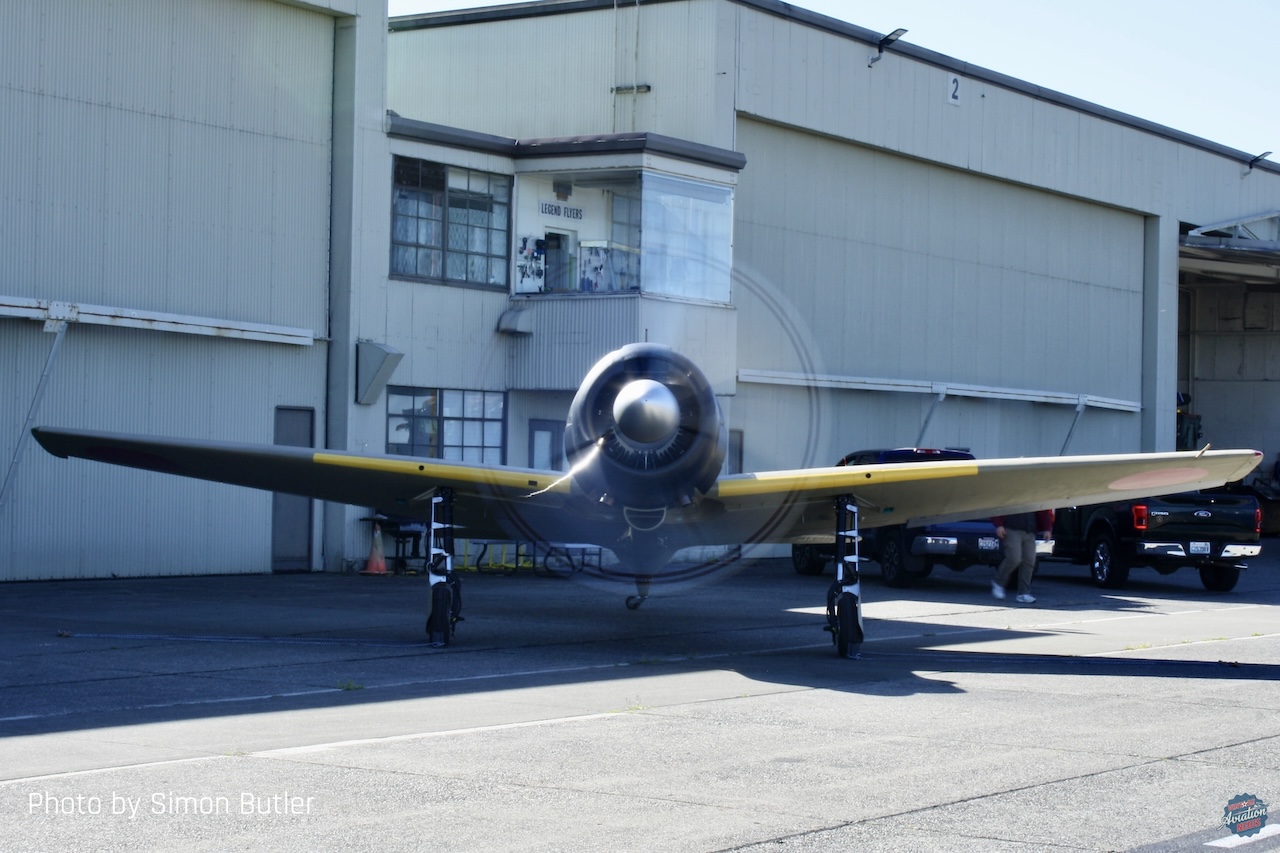 The Military Aviation Museum’s Mitsubishi A6M3 Model 32 Zero flew for the first time this morning following a successful test flight with Chief Pilot Mike Spalding at the controls. This is the culmination of decades of work, primarily by the team at Legend Flyers, but also including a handful of other workshops before them. Today’s flight from Paine Field in Everett, Washington like marks the first time a Model 32 Zero has taken to the air since the end of WWII. The former Imperial Japanese Navy fighter took off just before 10 am local time, with Mark Darrow following behind in his T-34C Turbo Mentor acting as a chase plane. Spalding took the Zero up to about 4,200′ and made a dozen or so orbits in the half-hour flight over an area just to the west of the airfield whilst putting the aircraft through a series of tests to evaluate the systems, flaps, and undercarriage.