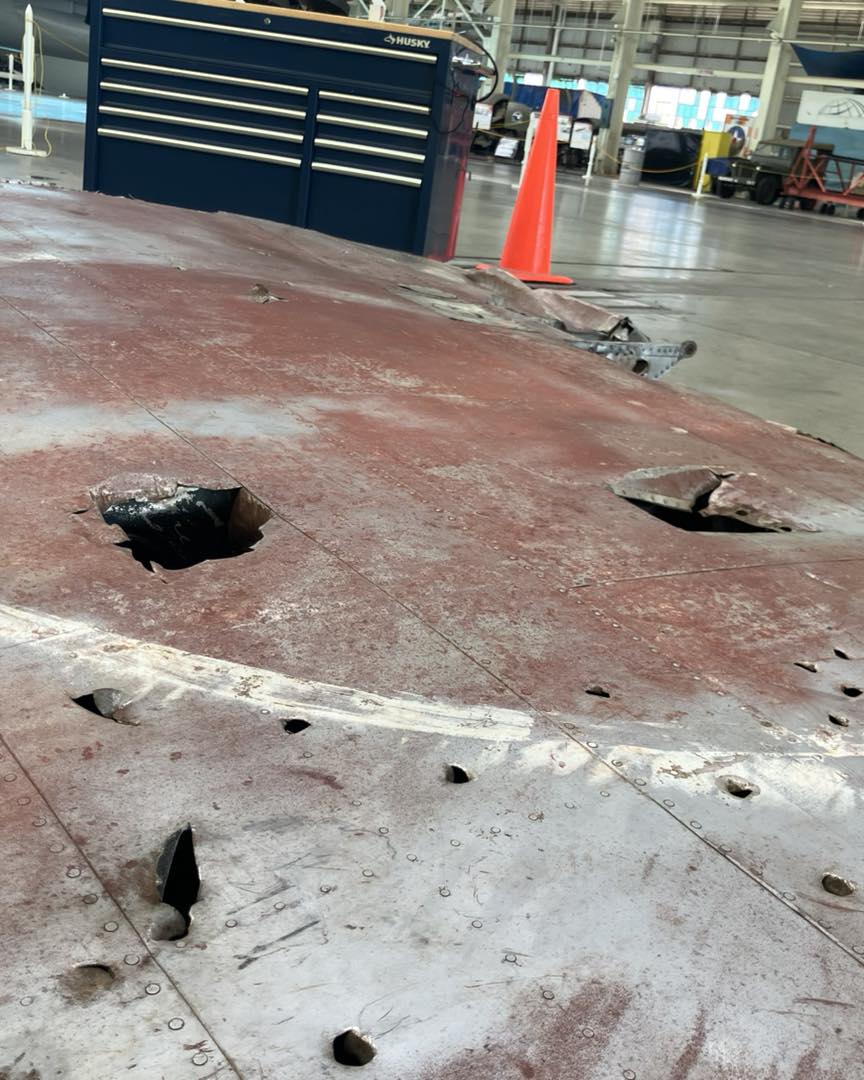 Yet even with the B5N2 on display, the museum sought to install a new outer wing panel on the port side of the aircraft. The aircraft’s remaining outer wing on the starboard side was removed and returned to Hangar 79. There, the wing panel was scanned in 3D so that its internal structure could be replicated for a new left outer wing panel. All the while, the original right outer wing panel was kept in the hangar for continual reference as museum volunteers built the new wing panel that was mirrored to fit on the remaining center section of the left wing.