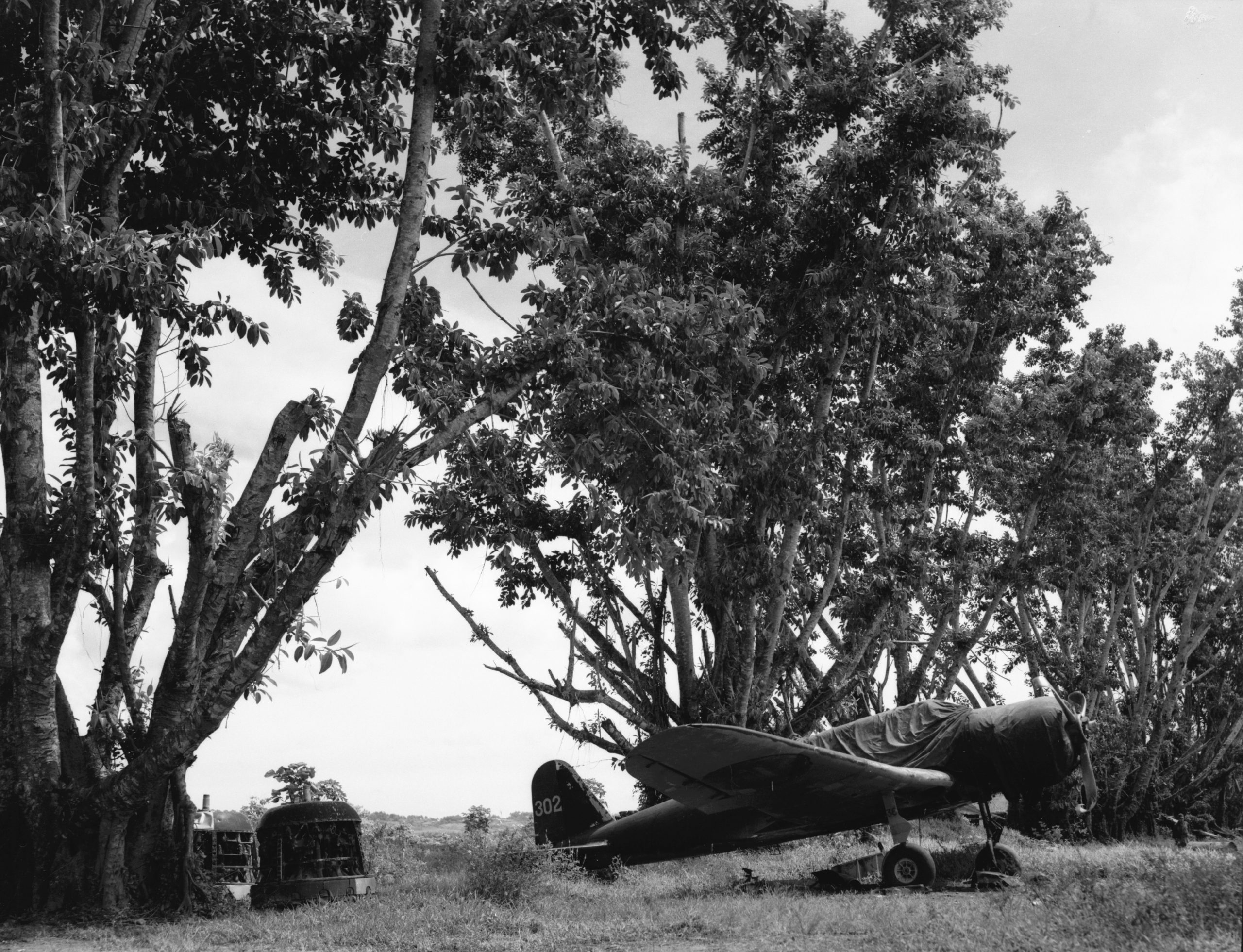 While the Allies had mandated the application of “surrender colors” to Japanese aircraft, which consisted of an overall white scheme and green crosses over the overpainted Hinomaru (Rising Sun) roundels, B5N2 ‘Kate’ 302 never wore these colors. After the Allied Powers began their occupation of New Britain, which had been governed during the Interwar Years as a League of Nations Mandate territory governed by Australia until its conquest by the Japanese in 1942, the Japanese airmen issued a request on September 10, 1945, to receive permission to surrender themselves and their airworthy aircraft to an Air Force unit rather than an Army unit. Their request was granted by the Allies, who issued the Japanese instructions to fly to the nearest Allied-controlled airfield from their locations. At this time, photographers of the Royal New Zealand Air Force (RNZAF) photographed ‘Kate’ 302 at Vunakanau with a tarp applied over its canopy and a damaged propeller.