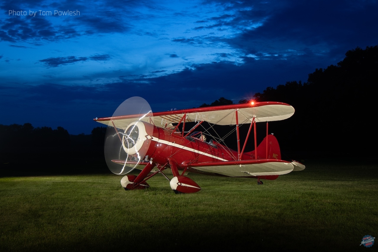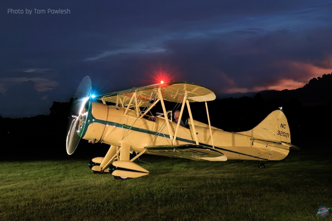 This was my first time at the Reunion. Despite not owning an aircraft myself, I was warmly welcomed into the group. Wanting to give back, I offered a complimentary night engine-run photo shoot to Waco owners on Thursday and Friday at sunset. With help from volunteers marshalling aircraft into position and returning them safely to their tie-downs after dark, we captured some unforgettable moments. The four Wacos that participated looked absolutely stunning—lined up on the grass, engines running, and lit dramatically by six strategically placed LED lights.