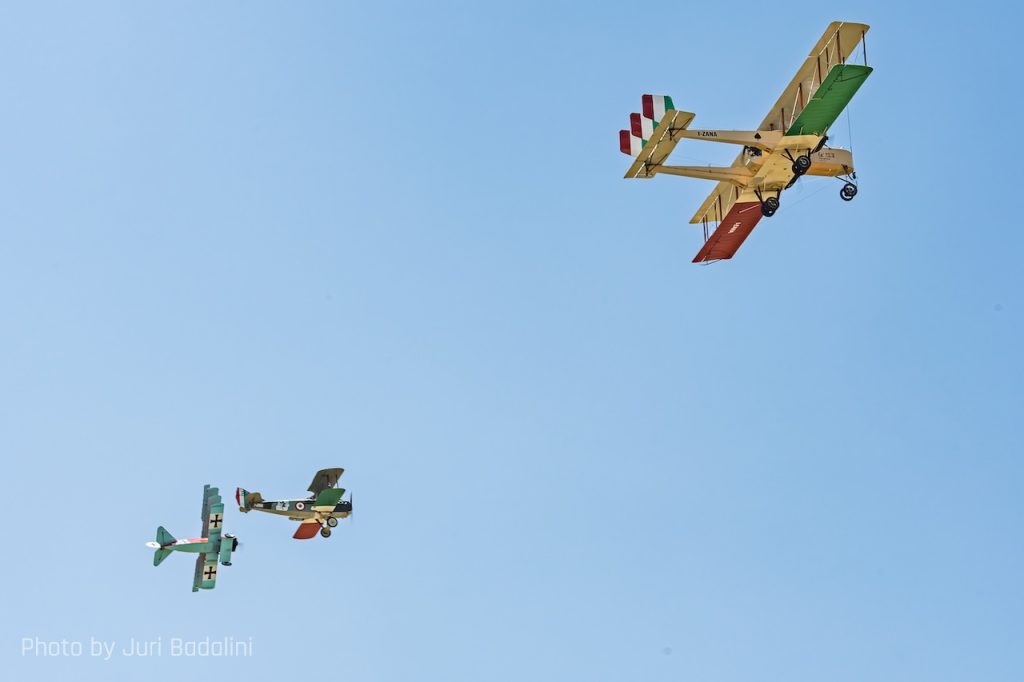 The 2025 flying program offered a rich variety of aircraft and performances. The undisputed star was the massive Caproni Ca.3R from the Jonathan Collection, piloted by Fabio Consoli and Daniele Beltrame, fresh from an appearance in Jesolo. Joining them in a dramatic World War I-themed dogfight were Fabio Iannacone in the Spad XIII and Mauro Di Biagio flying the Fokker Dr.I—a thrilling tribute to the legendary aces of the Great War