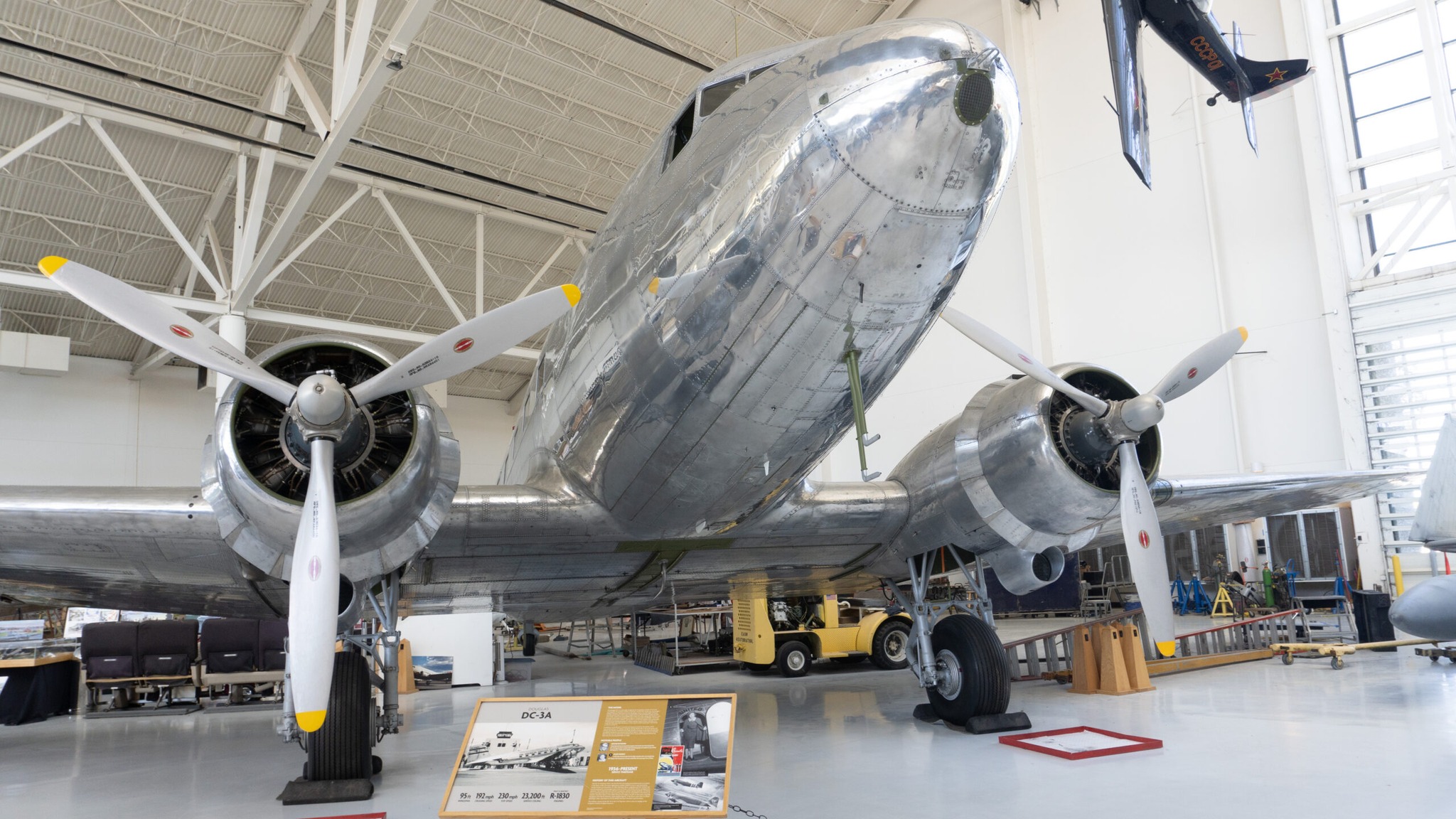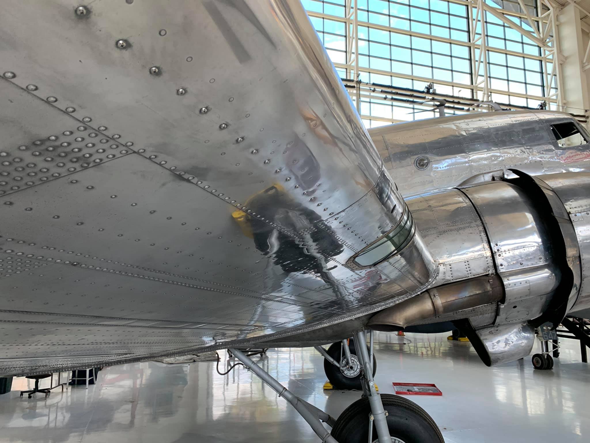 Douglas DC-3A-197 Mainliner “Reno,” s/n 01910, N16070. This particular aircraft was the first DC-3A produced by Douglas Aircraft Company to be delivered to an airline. It was delivered to United Airlines on November 25, 1936, as N16070 and has flown with that registration number its entire operational history, which has been entirely civilian – no service as a C-47 military transport. I am told it retains its original skin, interior configuration, flight controls, and instrumentation (although the latter must certainly be upgraded). It was built with no deicing boots on the leading edges of the wings (although they had been developed 1928-30 by B.F. Goodrich Company in Akron, Ohio). It has flown over a million cargo/passenger miles and has had 153 engine replacements during its history. My photos at Evergreen Aviation & Space Museum in McMinnville, Oregon, where it has maintained its airworthy status with the FAA, but is not currently being flown to my knowledge.