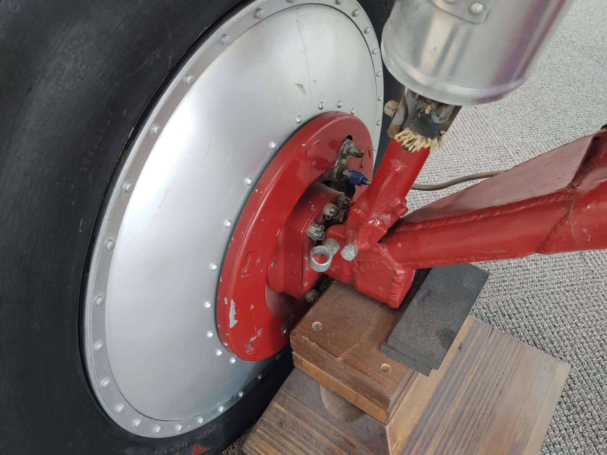 Wheel assembly on the landing gear of Stearman C-3B N7550 on display at the Museum of Flight, Seattle, Washington. (Don England)