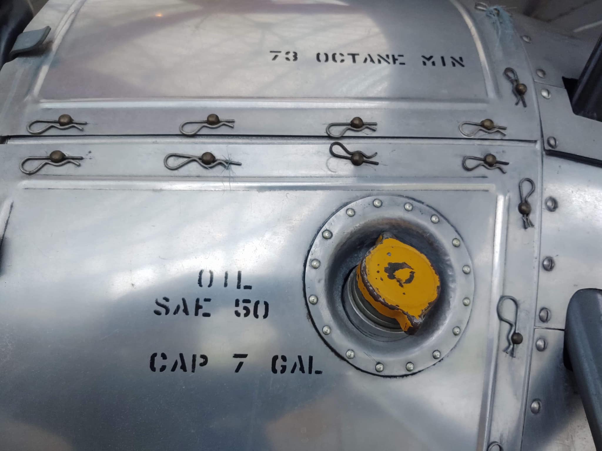 Panels for the fuel and oil tanks of Stearman C-3B N7550 on display at the Museum of Flight, Seattle, Washington. (Don England)