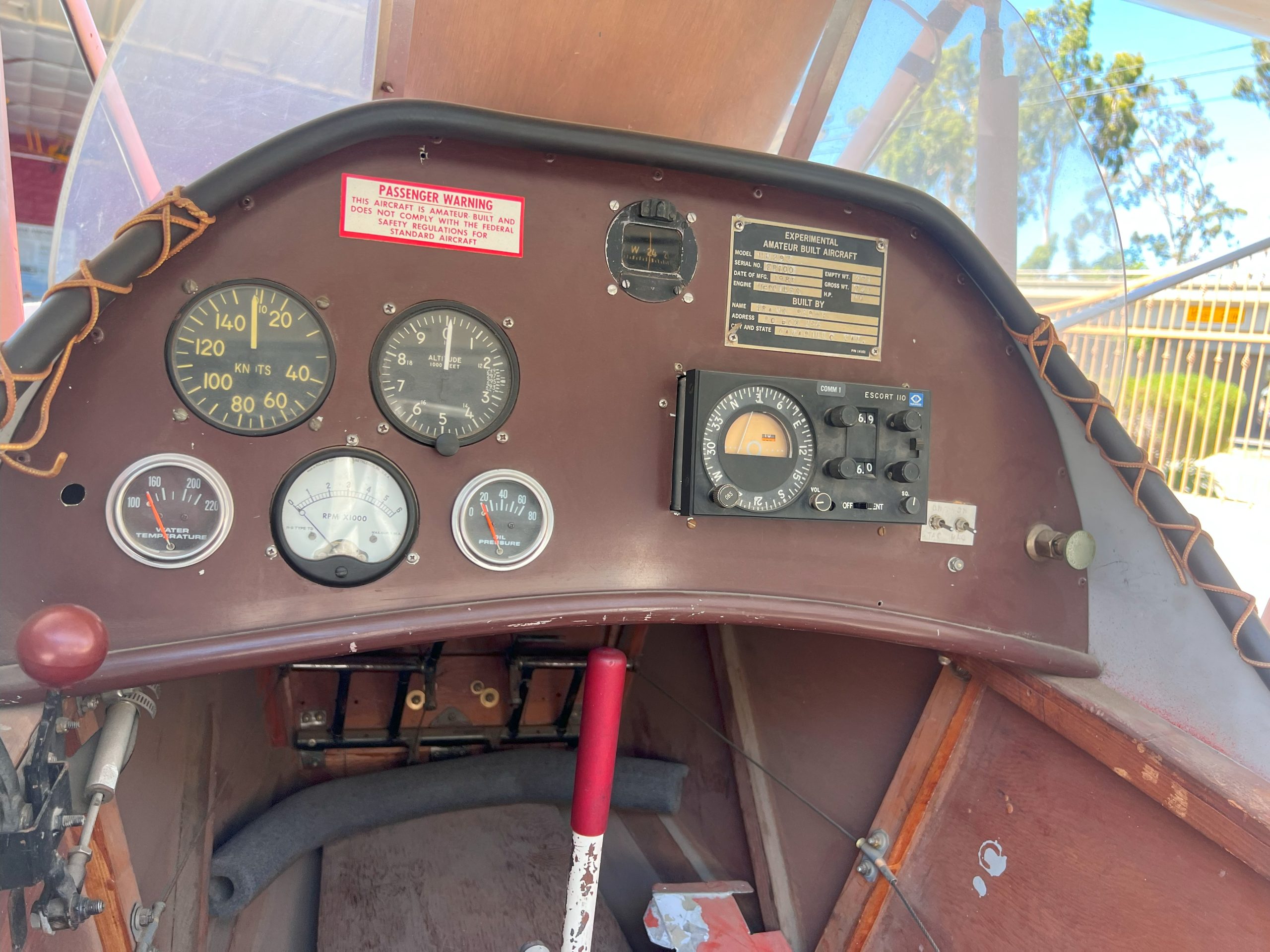 In addition to the DH.60 Moth, the Aviation Museum of Santa Paula also features an airworthy replica of a Mignet HM.293 Pou-du-Ciel (Flying Flea/Louse). Designed by Frenchman Henri Mignet as an affordable, easy-to-fly airplane that could be an alternative to automobiles for personal transport, the original Pou-du-Ciel, the HM.14, had a promising start in 1933 that was cut short by a series of fatal crashes on account of a design flaw. Though Mignet corrected his design, the Pou-du-Ciel never fully emerged from the negative publicity around it but still managed to carve out a respectable niche with successive variants built to a variety of specifications. The aircraft found in Santa Paula was built over a ten-year period from 1973 to 1983 by Frank E. Perry, a pilot and homebuilt kit airplane builder from Camarillo, California. The aircraft was given the registration N293FP, and the badge on its instrument panel states its construction number to be FP100. The badge also states that it is powered by a Hercules engine, which in this case is a four-cylinder horizontally opposed inline engine for a military generator similar in appearance and function to a Continental inline engine. The aircraft’s wings and horizontal stabilizer also fold to be stored in smaller hangars if needed.
