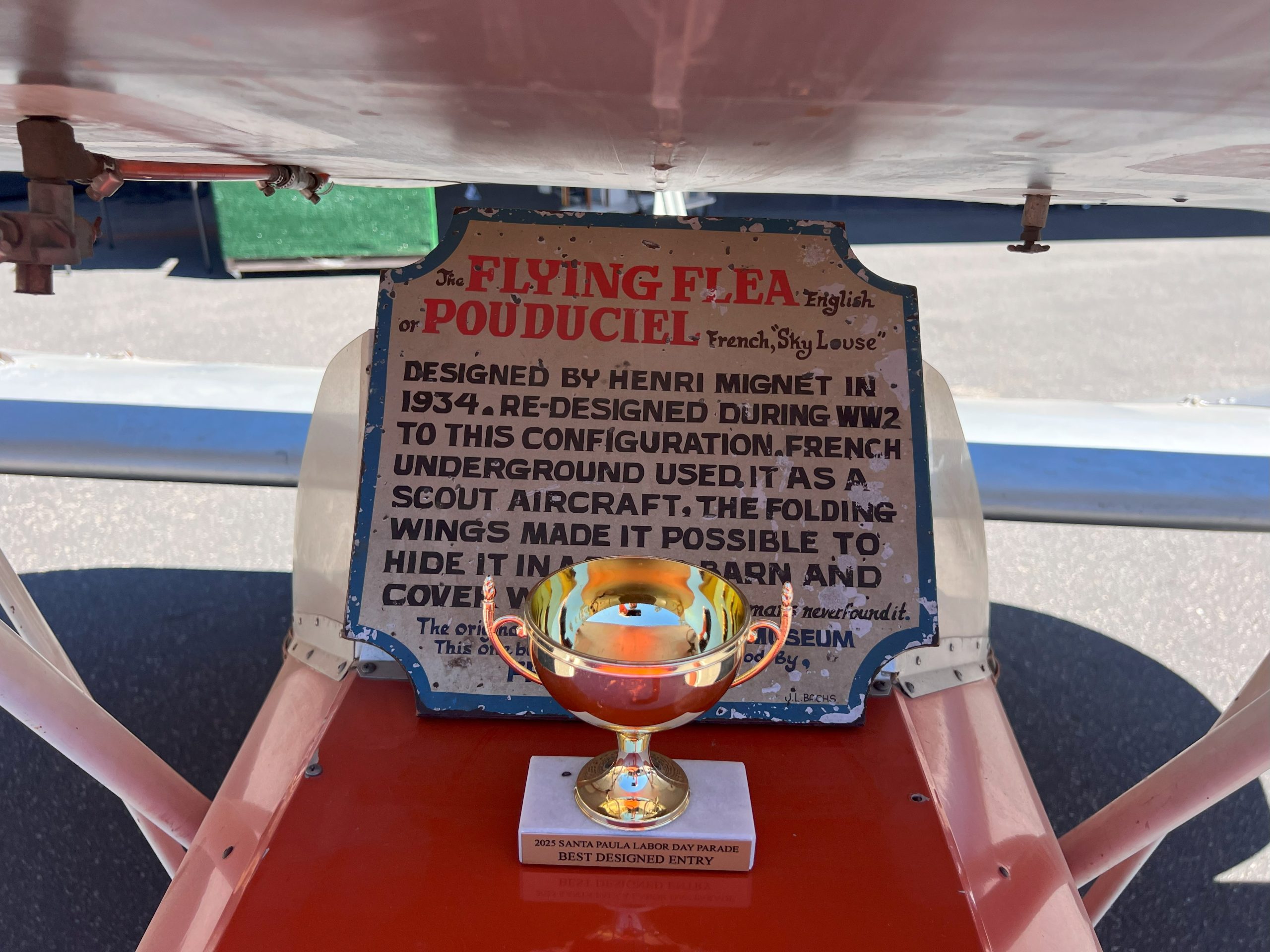 Sadly, Perry was killed in 1994 while flying a homebuilt replica of a 1924 Dormoy Bathtub out of Camarillo Airport. Still, the HM.293 Pou-du-Ciel he built is now on permanent display at the Aviation Museum of Santa Paula. Its compact size and folding wings have enabled it to be towed on trailers or parade floats for local events in Santa Paula, such as the Labor Day Parade, where it received the trophy for Best Designed Entry.
