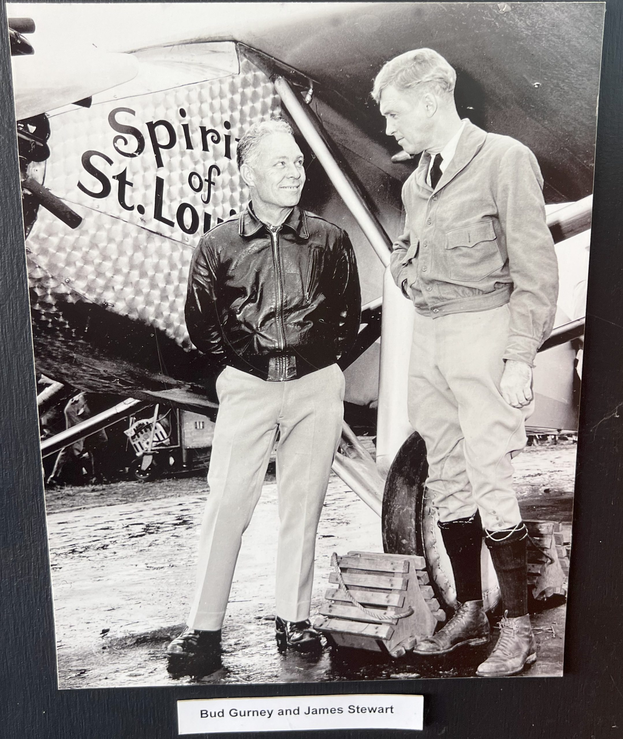 Many notable aviators kept their planes in Santa Paula’s hangars after WWII. There was Harlan “Bud” Gurney, who had learned to fly in Lincoln, Nebraska, in 1922 alongside a young, tall man from Minnesota named Charles Lindbergh. Bud and “Slim” (Lindbergh’s nickname) remained lifelong friends, having flown together as barnstormers and air mail pilots across the Midwest during the 1920s, and while Lindbergh became an icon after flying nonstop and solo from New York to Paris, Gurney eventually became a pilot for United Airlines, flying for the company from 1932 to 1965. Bud Gurney and his wife, Hilda, frequently flew out of Santa Paula Airport, especially in his retirement years, where he restored and flew vintage aircraft. In 1957, Gurney was hired as a technical consultant for the film The Spirit of St. Louis, in which Jimmy Stewart played the role of Lindbergh, and Gurney was portrayed by actor Murray Hamilton. In 1969, Bud Gurney and Charles Lindbergh made one final flight together in Gurney’s de Havilland DH.60 Gipsy Moth N1510V out of Santa Paula Airport (in fact, this very aircraft is still maintained in airworthy condition at Santa Paula Airport and was formerly flown by the late David Watson). The museum at Santa Paula displays photos of Gurney and Lindbergh together with the airplane.